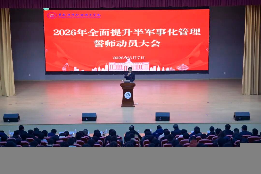 3月7日,学院召开2026年全面提升半军事化管理誓师动员大会。大会旨在统一思想、明确目标、压实责任,全面推动半军事化管理夯基固本、提质培优,为打造五个“出彩港湾”、建强港口“黄埔军校”注入强劲动力。学院...