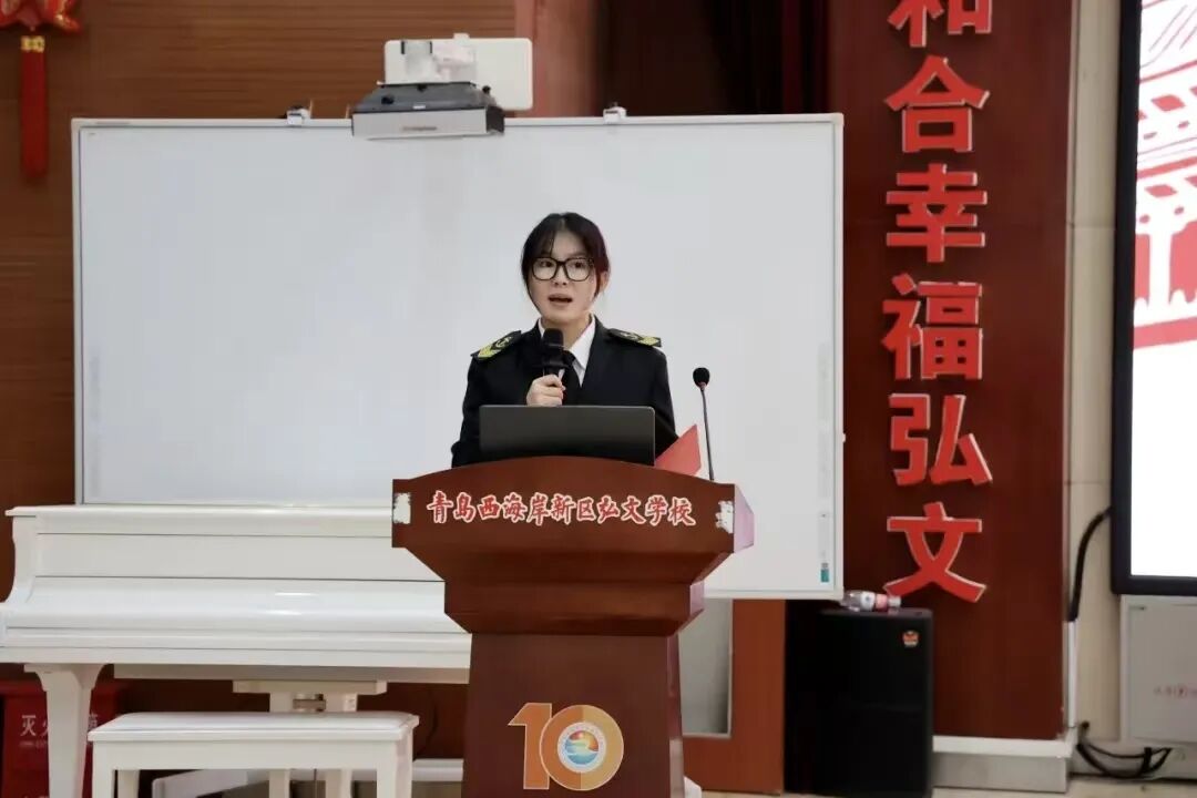 10月11日,学院3名“青蓝学长”走进西海岸新区弘文学校,以《修身·立志·友善——传统智慧照亮成长路》为主题,为同学们带来一堂生动深刻的“思政第一课”,课程围绕诚信修身、青春立志、友善待人等内容,结合经典故事与现实案例,引导同学们在传统智慧中汲取成长力量,树立正确的价值观和人生观。