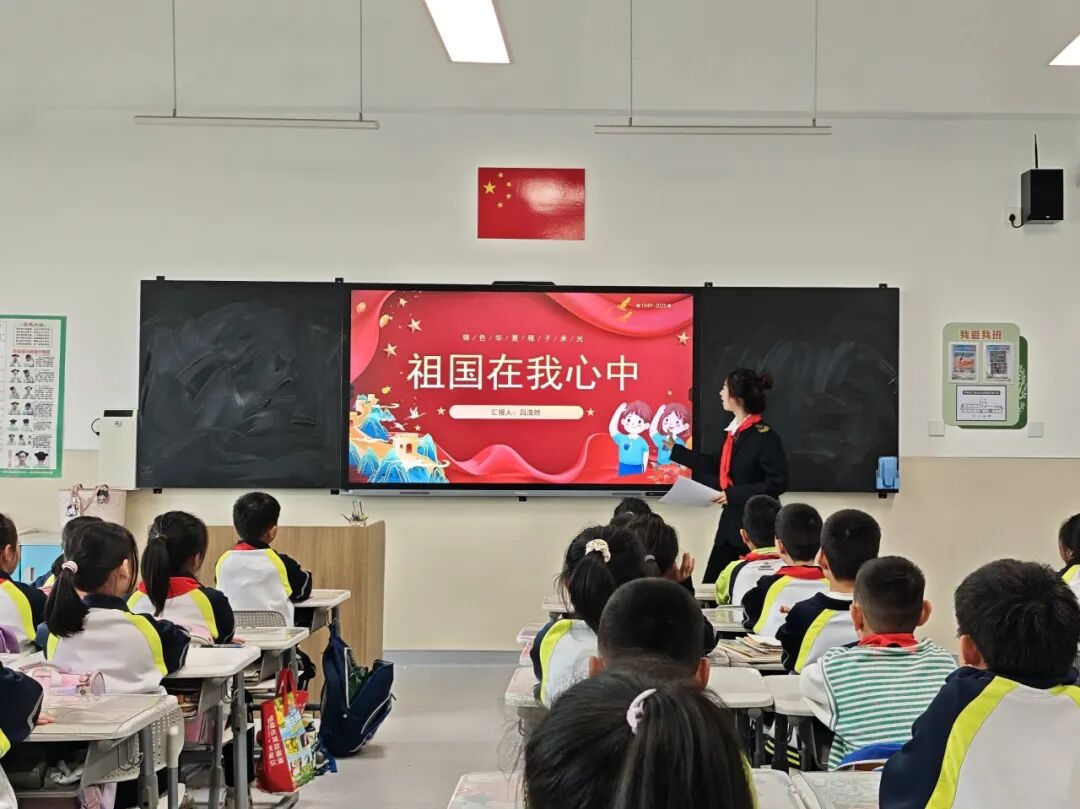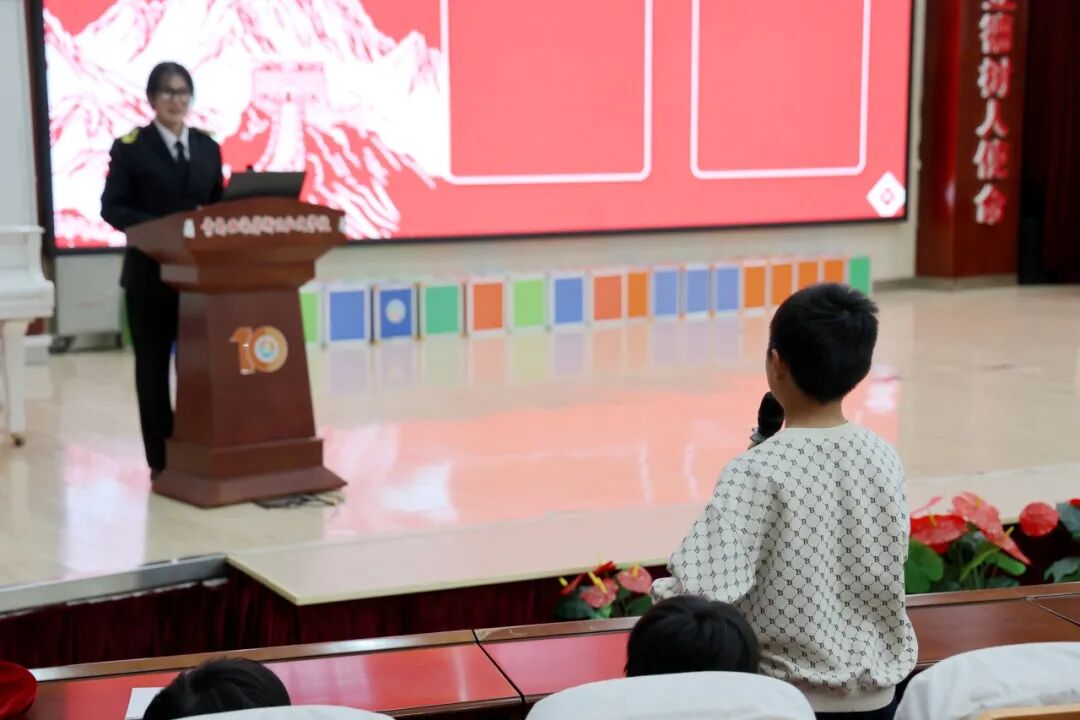 10月13日,中国少年先锋队建队日之际,12名“青蓝学长”受邀参加西海岸新区第二实验小学升旗仪式,学长代表冯筱涵以《牢记嘱托,红领巾与使命同行》为主题发表国旗下讲话,激励少先队员传承红色基因、立志报效祖国。仪式上,学校领导为12名“青蓝学长”颁发聘书。随后,学长们走进课堂,讲授《祖国在我心中》主题思政课,通过祖国知识问答、国庆由来讲述大国成就展示等内容,激发孩子们的爱国情怀与民族自豪。