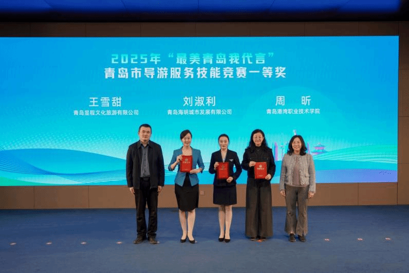 近日,2025年“最美青岛我代言”青岛市导游服务技能竞赛落下帷幕,学院参赛师生斩获多项荣誉,教师周昕获得英语导游一等奖,学生郁甜甜获得普通话导游优秀奖,学生邹雅雯获得英语导游优秀奖,郁甜甜和周昕同时获得“邮轮旅游推介官”,为青岛文旅代言,为学校争光添彩。