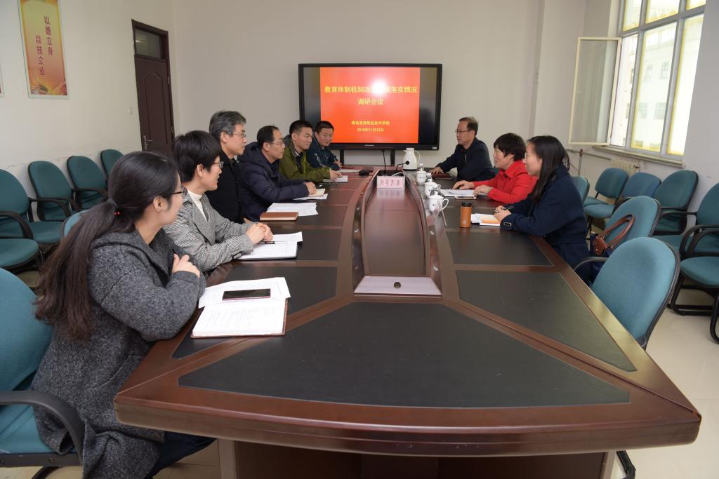 专家组认真听取了情况介绍,并与学校部分职能处室、有关学院主要负责人进行了座谈交流。专家组对学院综合改革及教育体制机制政策措施落实情况给予充分肯定,希望通过本次调研,及时总结学校在推进教育体制机制改革中的成功经验,形成可供借鉴的范式和样本,助推全省职业教育高质量发展。