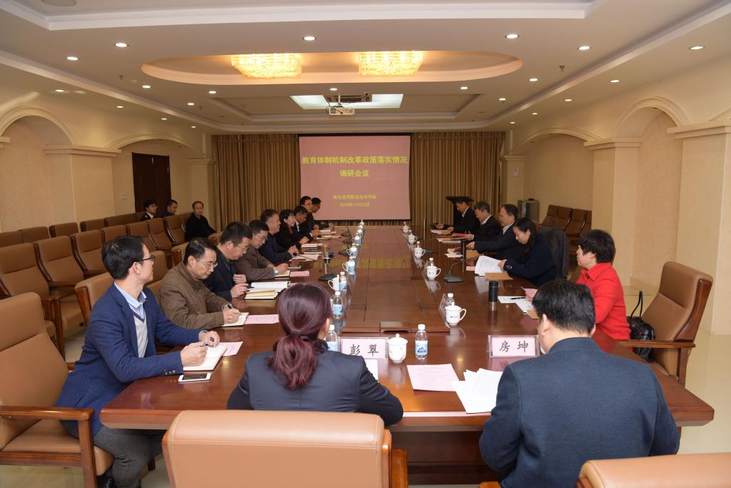 11月23日上午,山东农业工程学院党委副书记刘永波率山东省教育体制机制改革政策落实情况调研组一行五人到我院调研。学院全体领导班子、部分职能处室领导、教师代表参加座谈会。