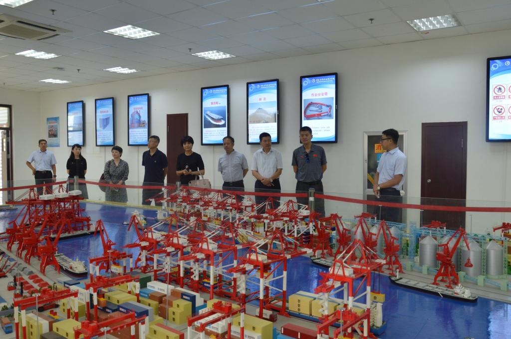 高峰一行首先到港口实景实训室、航海模拟器实训室和港口机械实训场地参观调研,随后双方观看学校宣传片并进行座谈交流。座谈中,王新泽代表青岛港集团和学校对河北港口集团有限公司领导的到访表示欢迎,对河北港口集团在推动双方交流合作过程中所做的大量工作表示感谢。刘民对学校的发展历史、招生就业、员工培训进行介绍,着重阐释了在港口融合的大背景下,在青岛港集团建设世界一流海洋港口的过程中,港湾学院依托港口,开门办学的办学理念。作为青岛港集团重要的教育板块,港湾学院秉持 “融入海洋战略,服务港航物流,培养优秀人才”的办学定位,力争在港口员工输送、人才培训,工种标准制定等方面发挥更为重要作用。