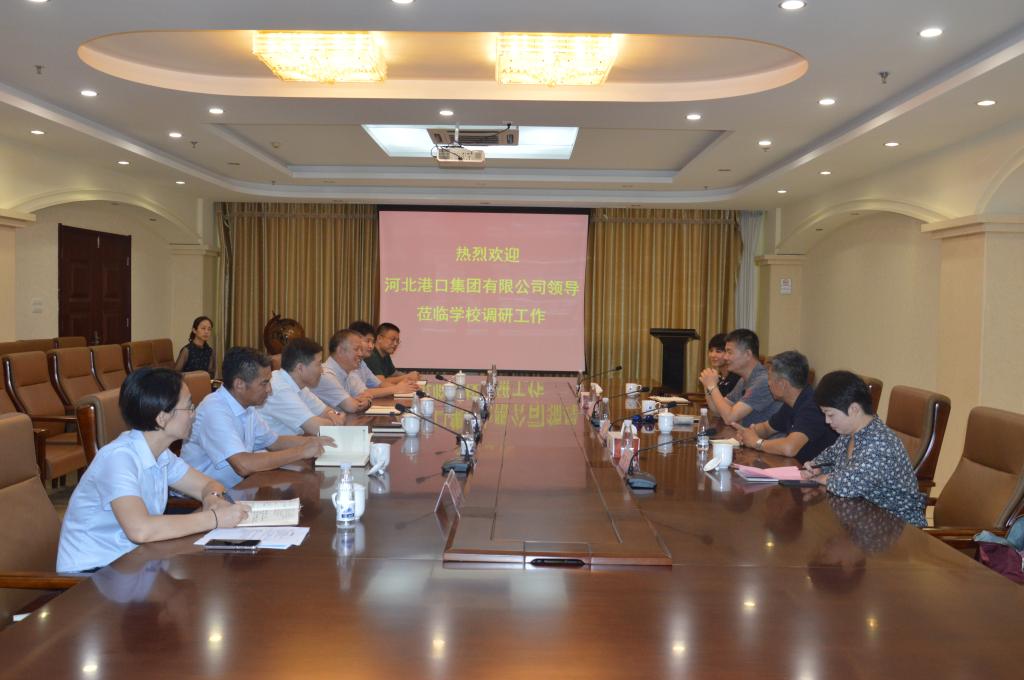 9月10日上午,河北港口集团有限公司总经理助理高峰一行到校调研洽谈合作,青岛港国际股份有限公司副总裁王新泽陪同来访,校长刘民,校党委书记王淑敏,纪委书记、工会主席孙洪勤接待到访来宾。