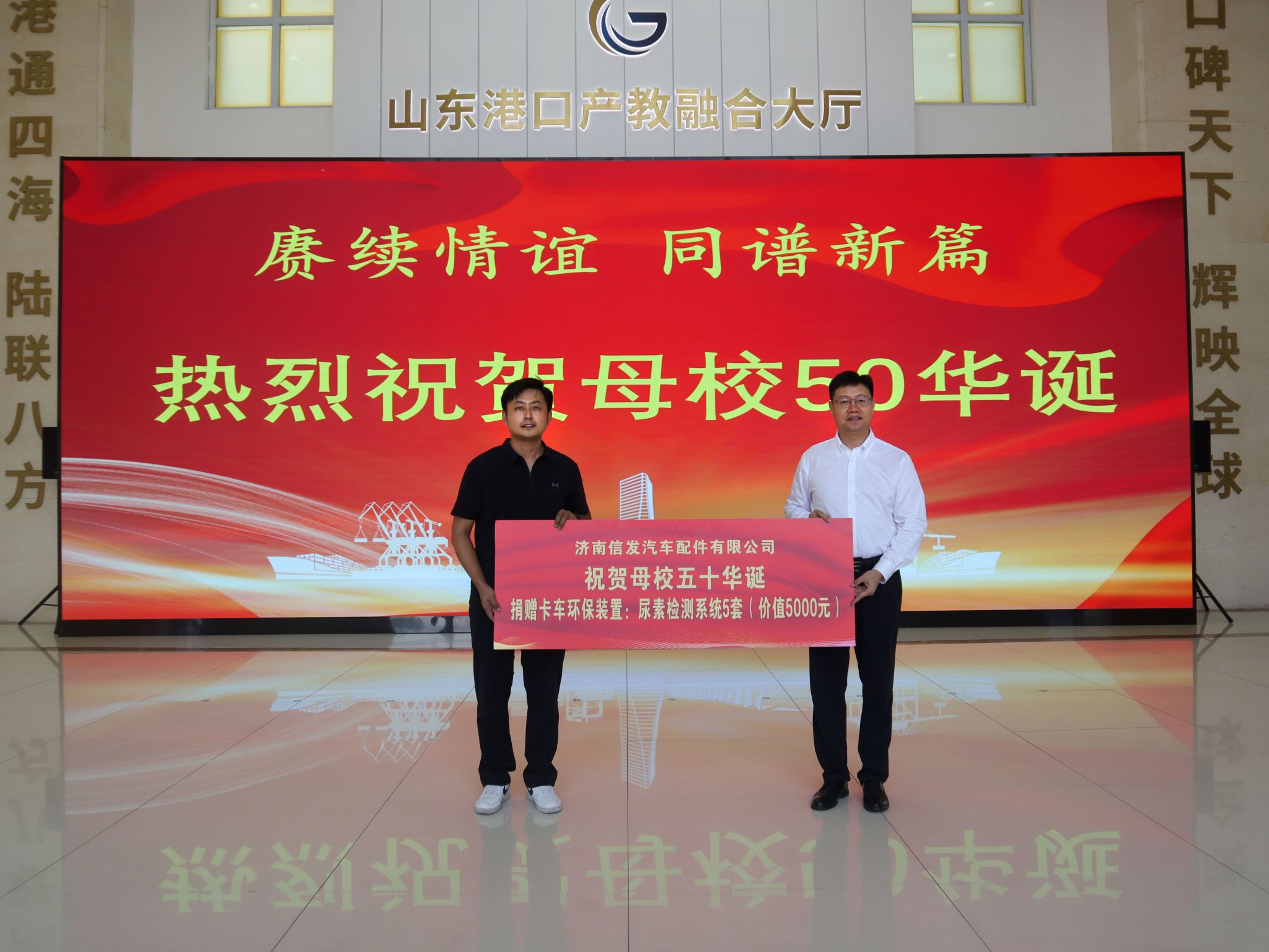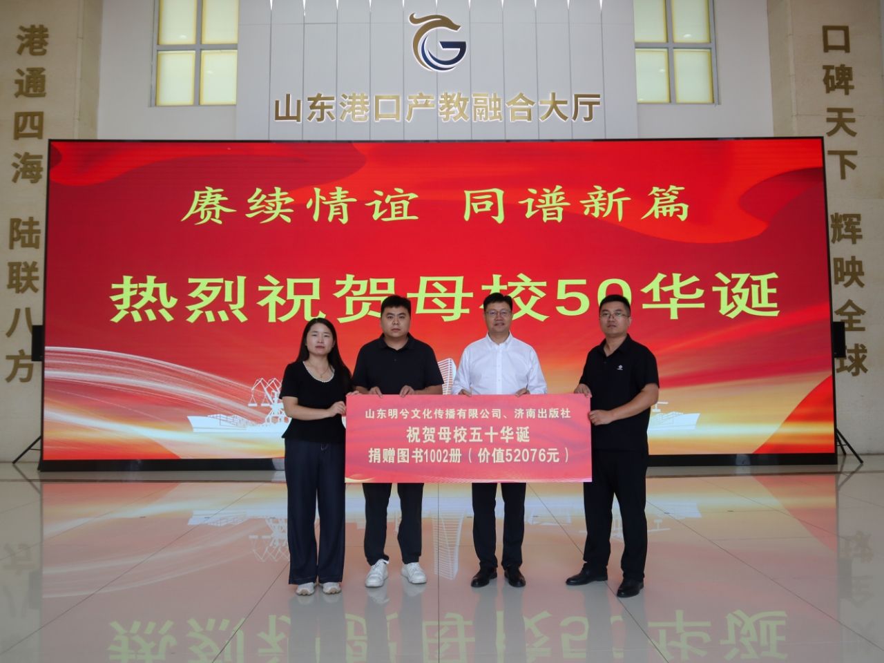 会后,智能制造学院举行了校友捐赠仪式,学院党委委员、副院长吕楠代表学院接受了捐赠。2009级数控1班周惠惠校友企业山东明兮文化传播有限公司联合济南出版社向母校捐赠图书1002册,价值52076元;2004级汽车应用技术班罗崇伟校友企业济南信发汽车配件有限公司向学院捐赠卡车环保装置5套,价值5000元;2007级汽车班赵钢、2004级数控1班、2014级数控2班、2014级机械制造及自动化专业5班等校友以个人或班级集体名义向学院捐赠了山水画、荣誉牌匾、锦旗、工艺品等。海泰科模具有限公司等合作单位捐赠了花篮。