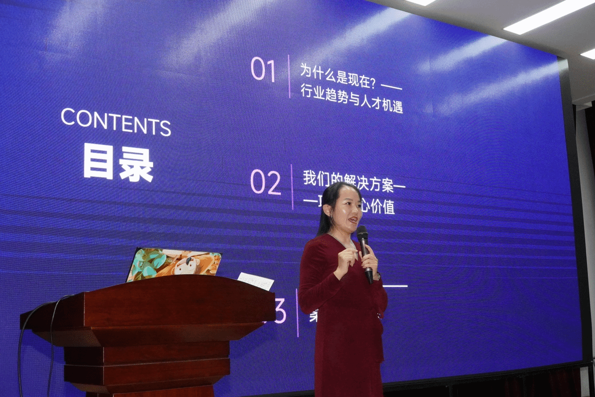 9月25日,人工智能学院于B5小礼堂举办了“数字内容产业人才赋能计划”专题讲座。讲座由青岛校企慧数字科技有限公司张丹丹经理主讲,学院24级数字媒体、电子信息、智能物流专业全体同学参加。