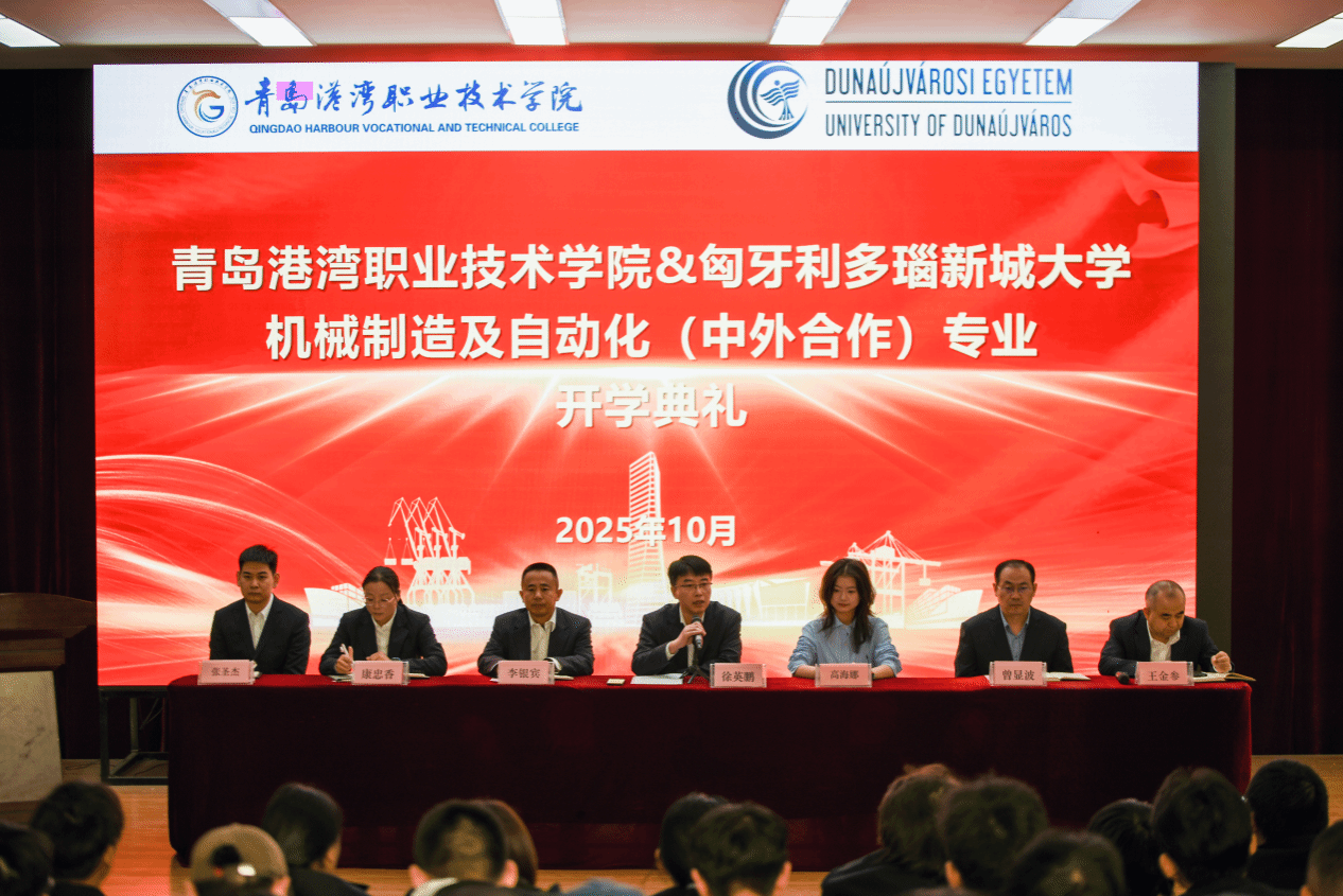 10月27日,青岛港湾职业技术学院智能制造学院在B5报告厅隆重举行机械制造及自动化(中外合作)专业班2025级新生开学典礼。学院领导班子、匈牙利多瑙新城大学中国办公室招生专员高海娜、专业带头人张圣杰老师,2024级、2025级全体中外合作班同学共同参加。典礼由机械基础教研室主任王金参主持。