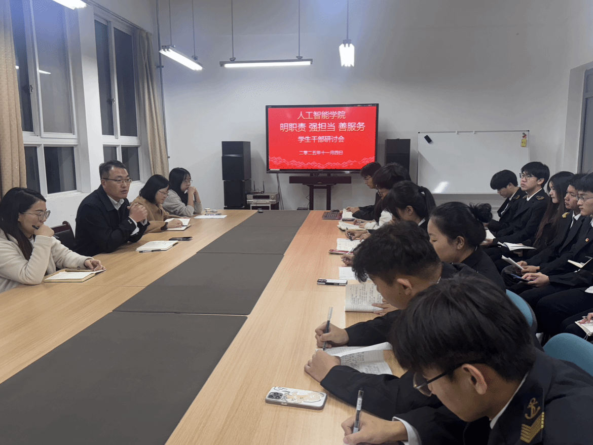 11月4日,人工智能学院分别于b5-204、b4-101召开“明职责·强担当·善服务”学生干部专题研讨会。教学工作部阎芳老师莅临指导,党总支副书记武心庆、团总支书记纪强主持会议、全体辅导员及大二学生干部参加。