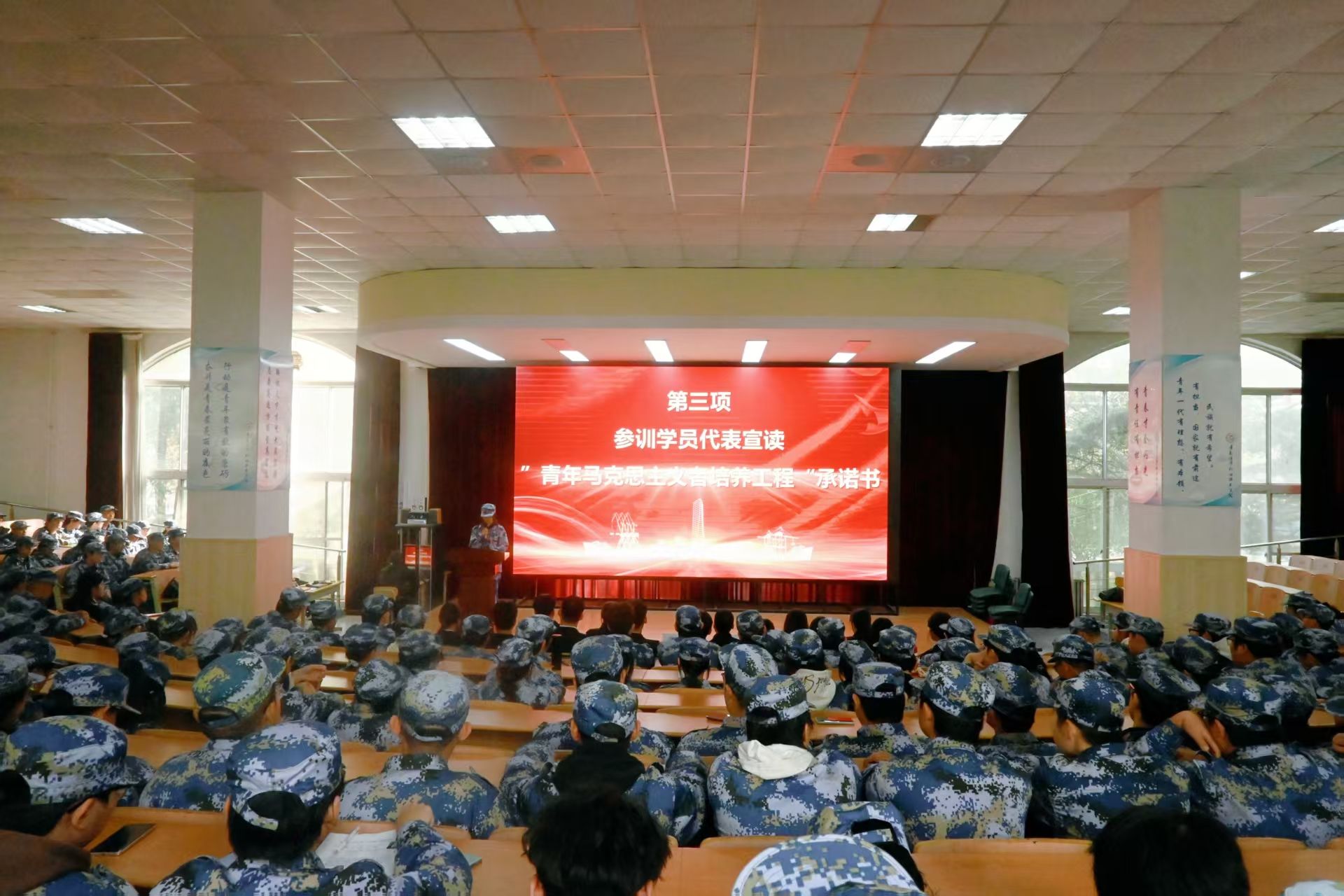 仪式在庄严的国歌声中拉开帷幕。学工助理代表李坤宇宣读了《“青马工程”骨干培训实施方案》,明确以“储备高素质青年干部”为核心目标,围绕思想引领、内务规范与作风建设三大板块制定培训标准。随后,参训学员代表宣读承诺书并发表开训感言,表示将以饱满的热情投入学习与实践,推动“青马精神”融入日常、落在实处。学工助理代表李浩晴在动员讲话中鼓励学员坚定信仰、锤炼本领,走稳成长之路。纪栋尚在总结讲话中对全体学员提出三点希望:一要坚定理想信念,筑牢思想根基;二要强化担当意识,主动经受锻炼;三要树立良好形象,正确对待评价。他强调,全体学员应珍惜培训机会,在实践中学真知、长实干,努力成长为政治可靠、素质全面的青年骨干。