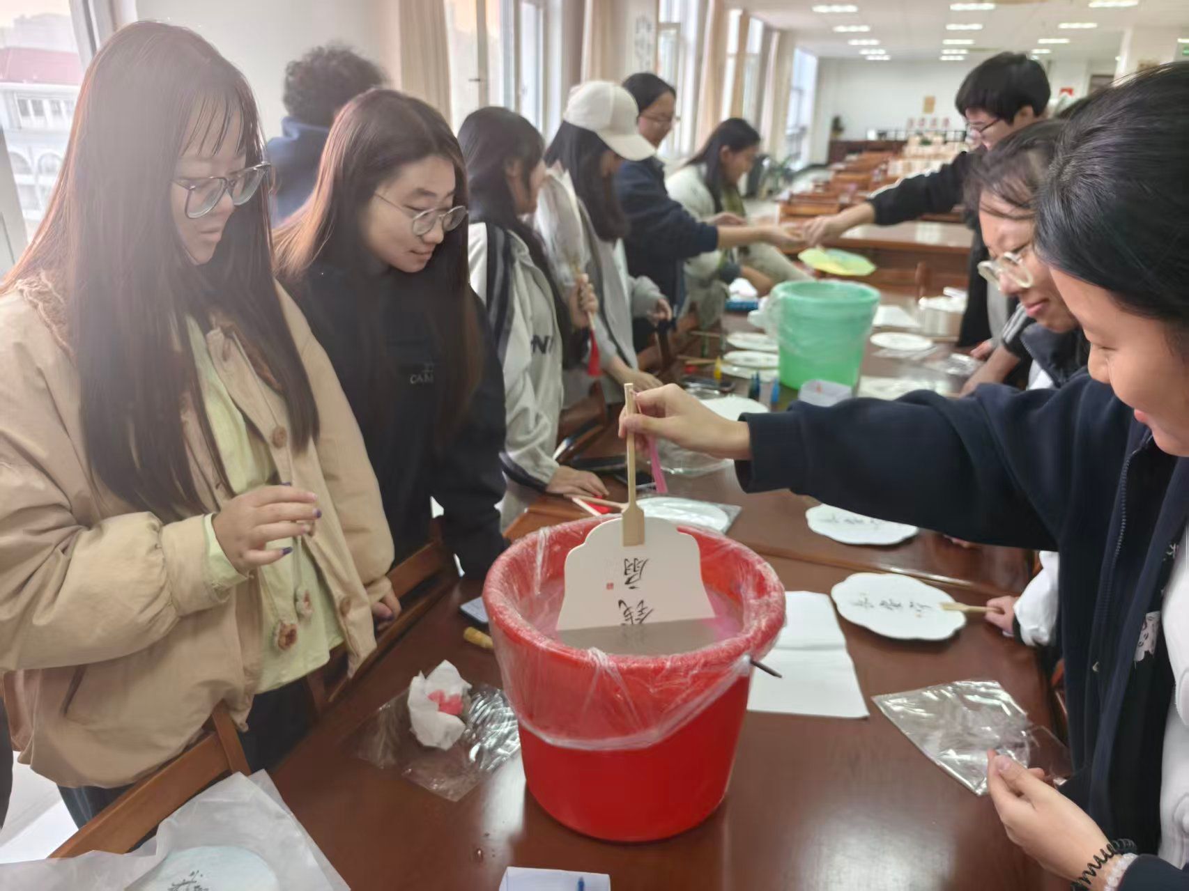 活动现场,既有初次体验的新面孔,带着好奇与期待进行创作;也不乏一些“回头客”,他们带着首次活动的经验与思考,在色彩搭配与纹样控制上进行了更大胆的尝试。同学们凝神静气,以水为画布,以漆为彩墨,手腕轻转间,一幅幅或典雅、或绚烂、或充满现代抽象感的图案在扇面上定格。现场惊叹声与欢笑此起彼伏,交织成一曲传统与现代的和谐乐章。
