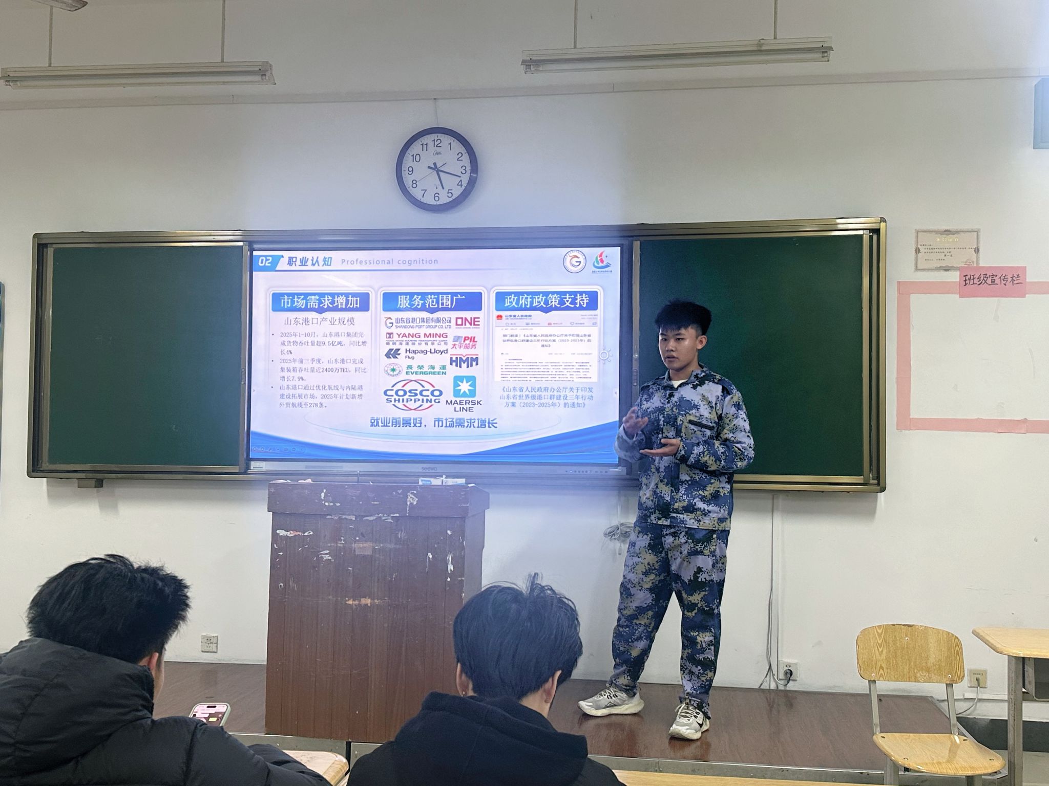 比赛现场气氛热烈,参赛选手围绕自我认知、职业探索与目标路径展开系统阐述。大家结合港航物流行业发展趋势与个人专业背景,以清晰的逻辑与扎实的内容,全面呈现了对未来职业发展的深入思考,展现出良好的综合素质与前瞻视野。