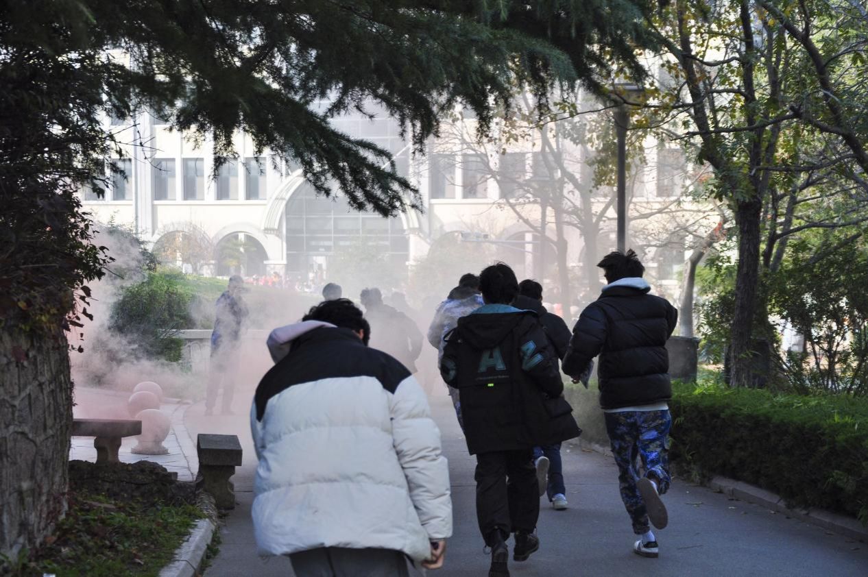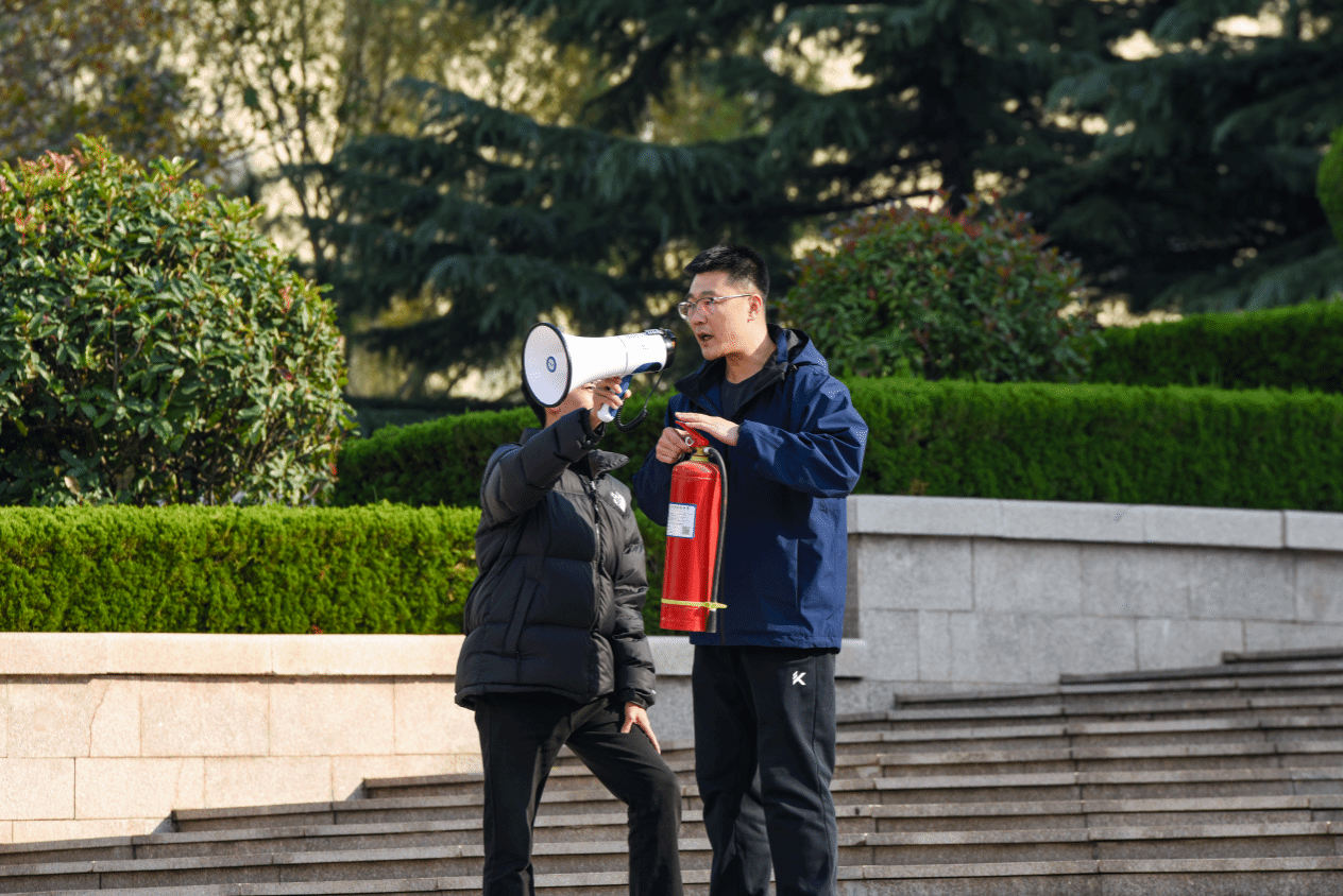 消防演练正式启动后,值班人员迅速引导,提醒同学们按照既定要求有序疏散。同学们立即捂住口鼻,秉持“低姿、捂鼻、靠右”原则,从宿舍楼安全撤离至食堂南广场,全程无拥挤、推搡现象。集合后,高延年对同学们的疏散表现给予肯定,他强调要关注公寓楼消防设施,熟悉设备使用方法与应急撤离路线,随后详细讲解了灭火器“提、拔、握、压”的操作技巧并现场演示。李银宾提醒同学们时刻绷紧消防安全弦,严禁使用违章电器,熟练掌握灭火器使用技能,遇突发情况务必冷静应对、迅速撤离,牢记“消防安全,生命至上”的核心准则。