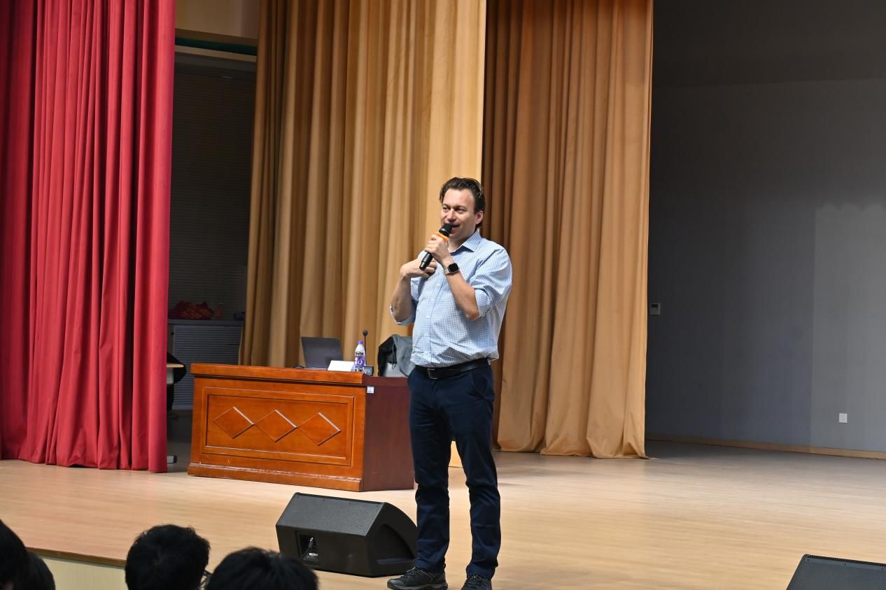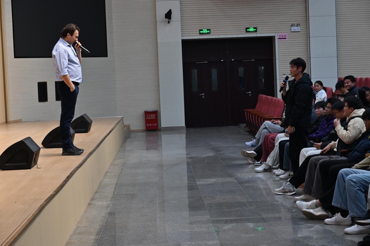 讲座中,穆萨·纳德尔·扎德以模拟课堂的形式展开授课,带领学生沉浸式体验英式教学模式,结合英语听说读写各类题型的应试技巧与沟通方法,通过生动讲解和趣味互动,引导学生打破传统英语学习思维局限,有效拓宽学术视野。模拟课堂结束后,他与学生开展面对面互动座谈,耐心解答学生关于英语学习、留学申请等疑问,细致分享英语学习的优质学术资源,为学生提供了兼具实用性与针对性的指导。