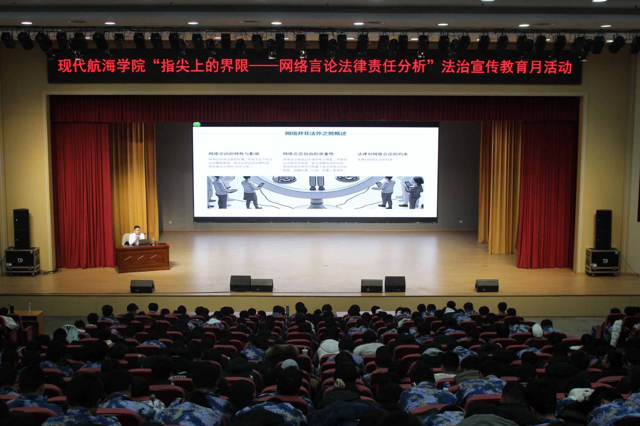 12月9日下午,现代航海学院在A0报告厅召开法治宣传教育讲座,此次讲座由党总支副书记姜哲和巩兴强律师及25级全体学生共同参与,旨在提升学生对网络言论法律边界的认知,倡导理性、文明、守法的网络交流环境。