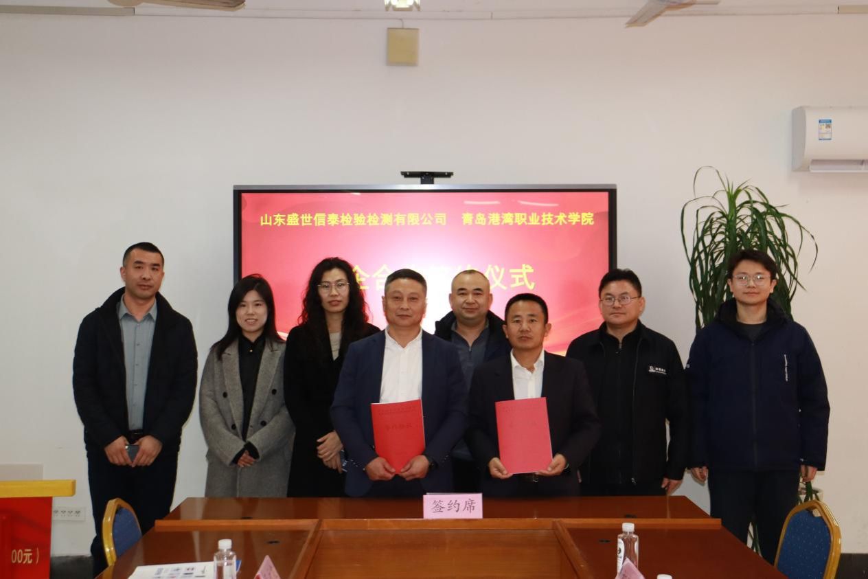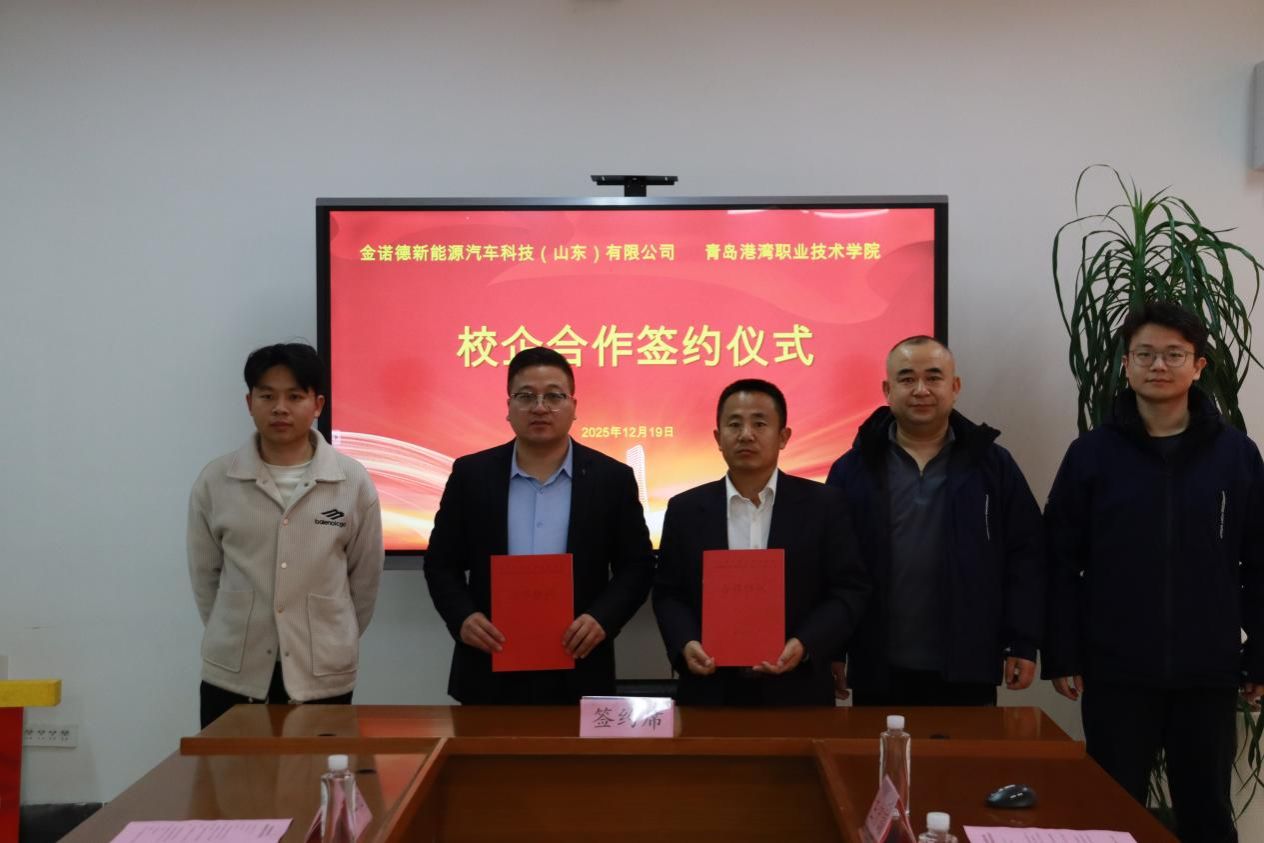 12月19日,智能制造学院校企合作签约仪式在A1-203会议室隆重举行。山东盛世信泰检验检测有限公司董事长马丰洁、总经理薛凯丽、副总经理马永泉,金诺德新能源汽车科技(山东)有限公司副总经理徐贵,青岛欧盛船舶与海洋工程有限公司副总经理徐鹏等出席仪式。仪式由学院党支部副书记李银宾主持。