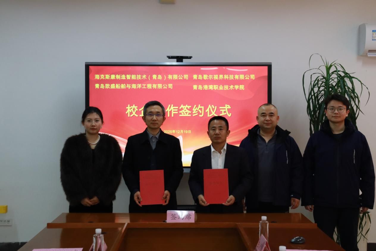 19日上午,全国港口航运产教融合共同体暨青岛古镇口海洋装备产教联合体2025年会在学院学术报告厅成功举行。年会上,山东盛世信泰检验检测有限公司与学院共建的“特种设备检测实验室”,金诺德新能源汽车科技(山东)有限公司与学院共建的“新能源汽车检测与维修联合培训中心”,青岛欧盛船舶与海洋工程有限公司、海克斯康制造智能技术(青岛)有限公司、青岛歌尔视界科技有限公司与学院四方共建的“精密检测产教融合实训基地”隆重揭牌。