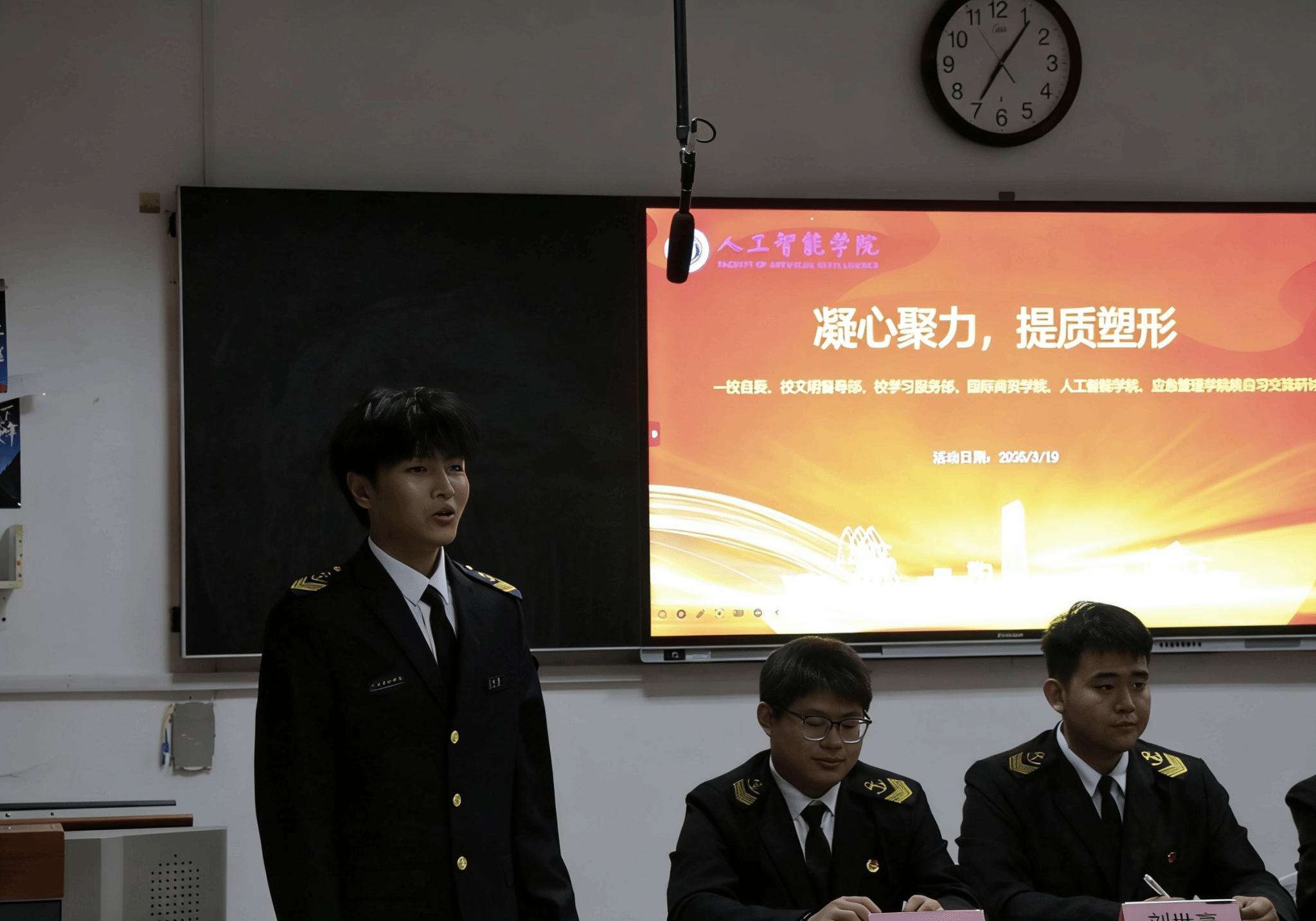 3月19日,人工智能学院联合校自委会文明督导部、校学习服务部、国际商贸学院、应急管理学院于B4、B5教学楼开展“凝心聚力,提质塑形”晚自习管理交流研讨会。