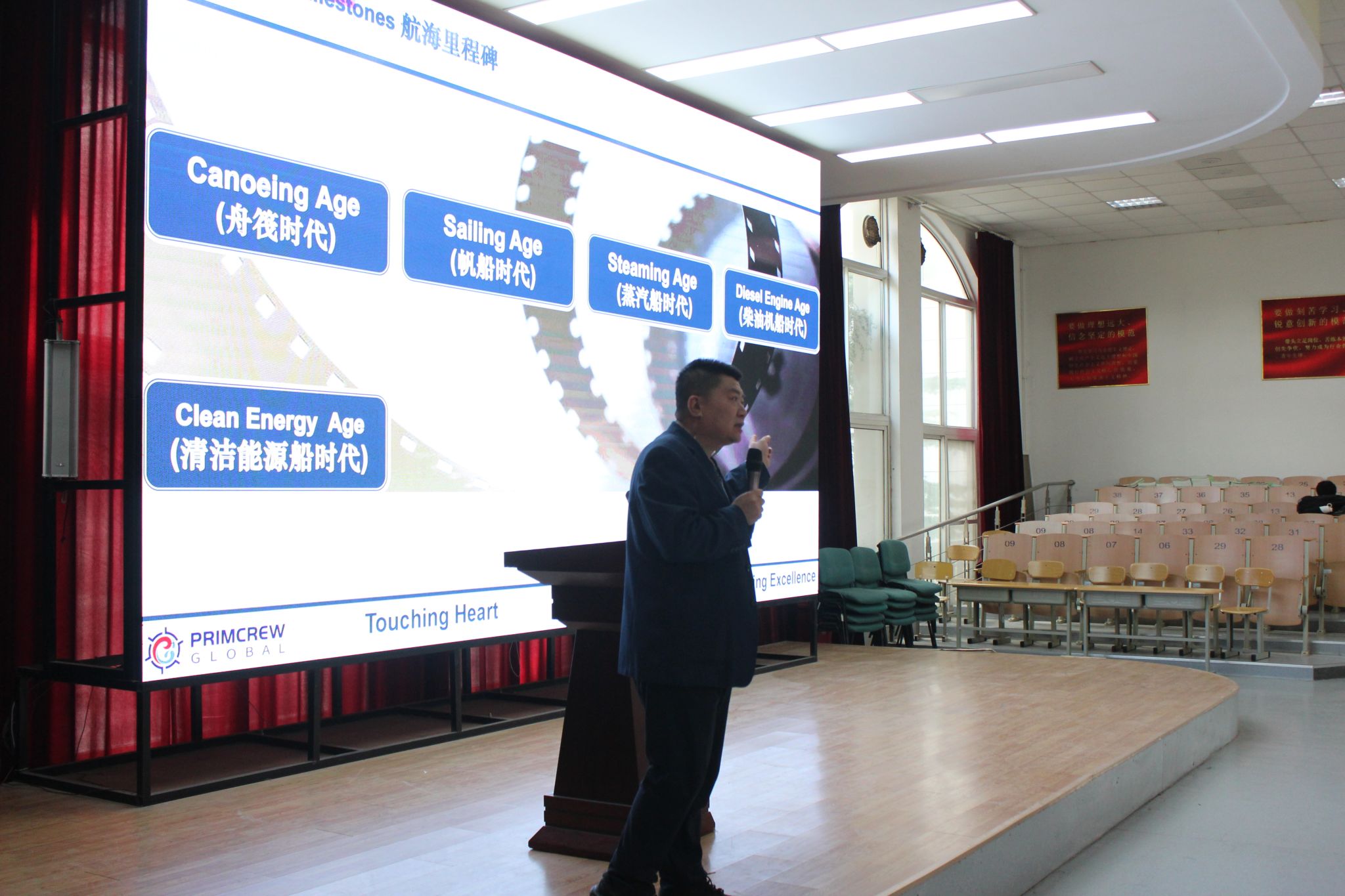 近日,现代航海学院特邀资深尹国杰船长走进校园,为学子们带来“航海职业规划”专题讲座,助力同学们明晰职业方向、感受航海文化魅力。讲座现场座无虚席,学子们认真聆听,沉浸在航海事业的厚重底蕴与广阔前景中。