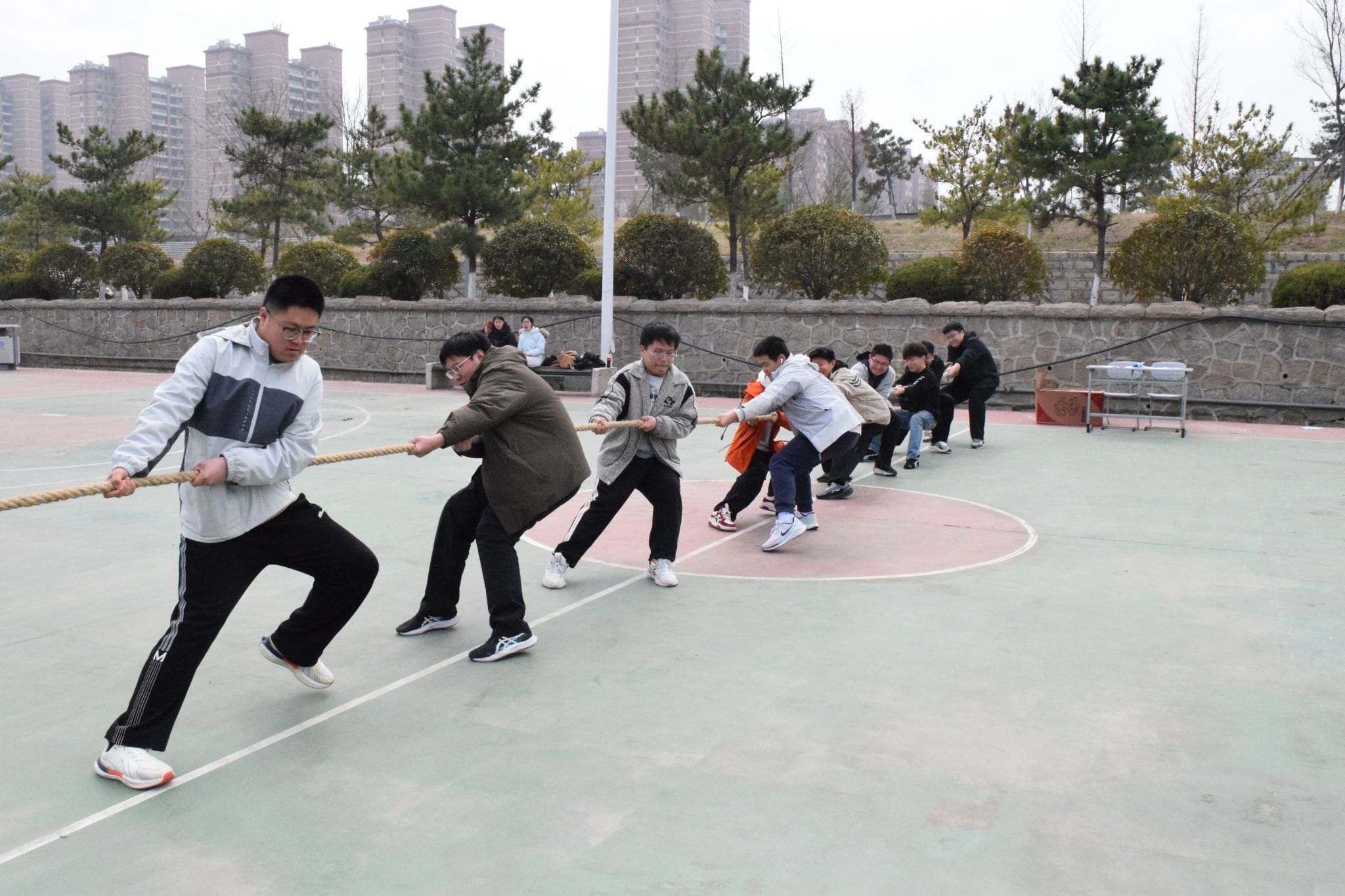 运动会设置了跳大绳、沙包投掷、背力接球、拔河、定点投篮、呼啦圈、踢毽子、两人三足八大趣味项目,兼顾趣味性与协作性。赛场上,参赛学生热情高涨、奋勇争先,跳大绳时步伐整齐、配合默契,拔河比赛中劲往一处使、喊声震天,各项赛事轮番上演,掌声与欢呼声此起彼伏,充分展现了应急学子朝气蓬勃、团结协作的良好风貌。