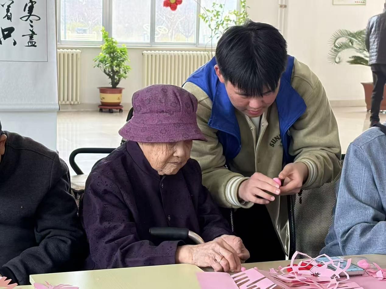 活动现场,志愿者们与老人们亲切围坐,耐心细致地手把手教学剪纸、折纸技艺。红纸翻飞间,一个个精致的窗花、一件件小巧的折纸作品跃然成型,活动室里满是欢声笑语,温情四溢。志愿服务过程中,志愿者们还主动承担起场地清扫、公共区域整理等工作,以细致入微的行动为老人们营造出整洁、舒适的生活休闲环境,用点滴付出诠释着青年的责任与担当。
