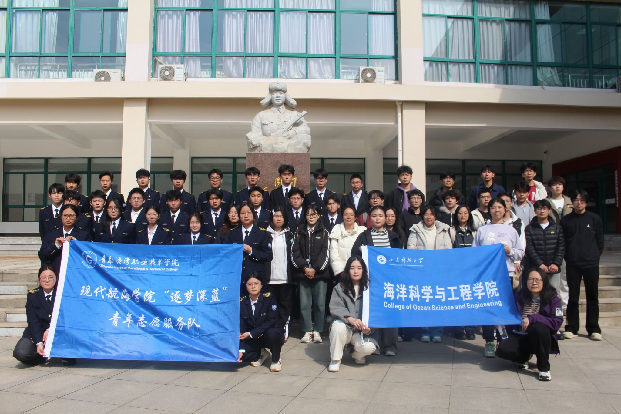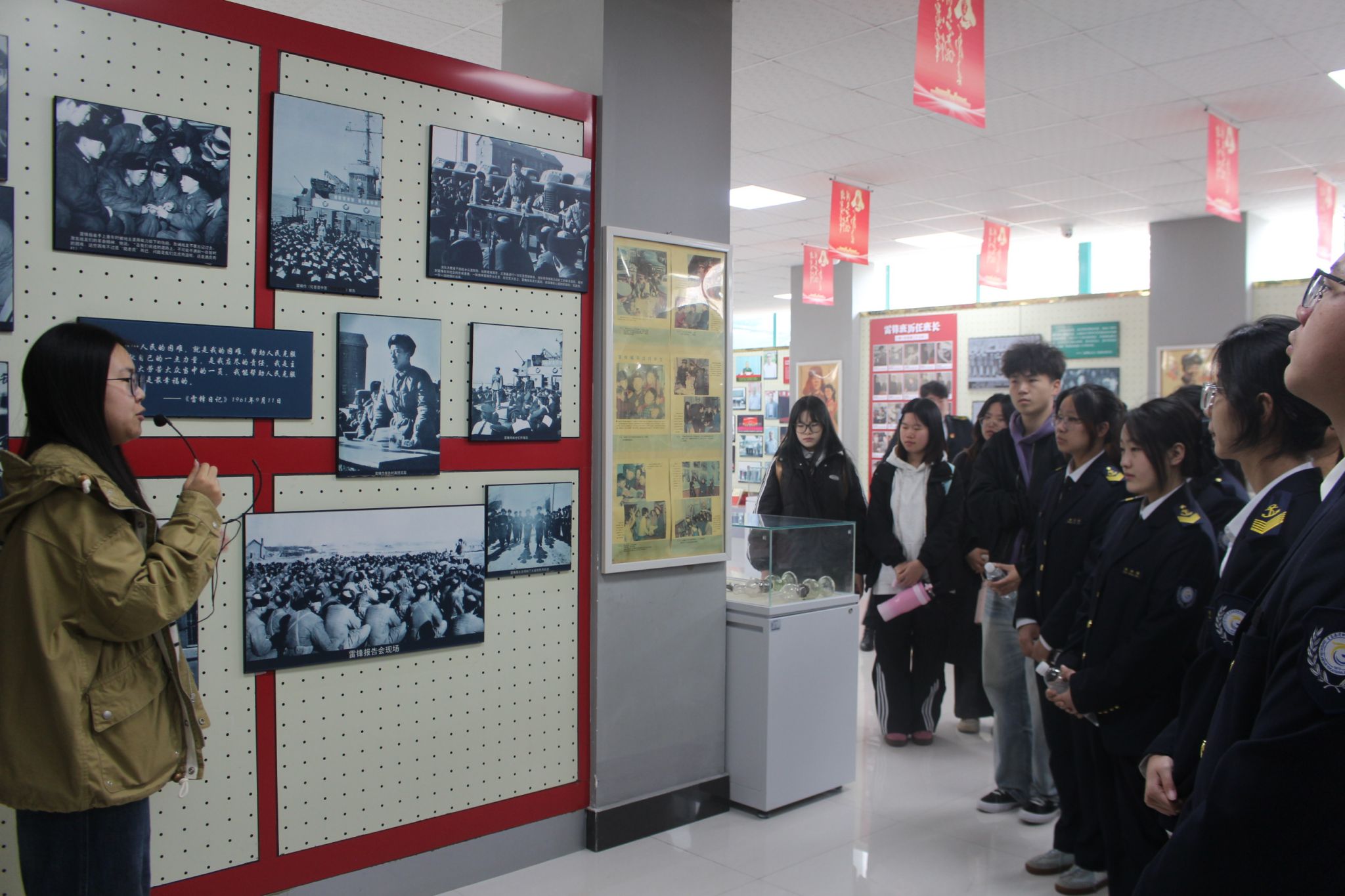 现代航海学院开展“传承雷锋精神 扬帆青春使命”主题志愿服务活动,港湾青年携手山东科技大学与青岛黄海学院师生走进雷锋纪念馆,在雷锋纪念馆讲解员带领下开展沉浸式学习与志愿实践。