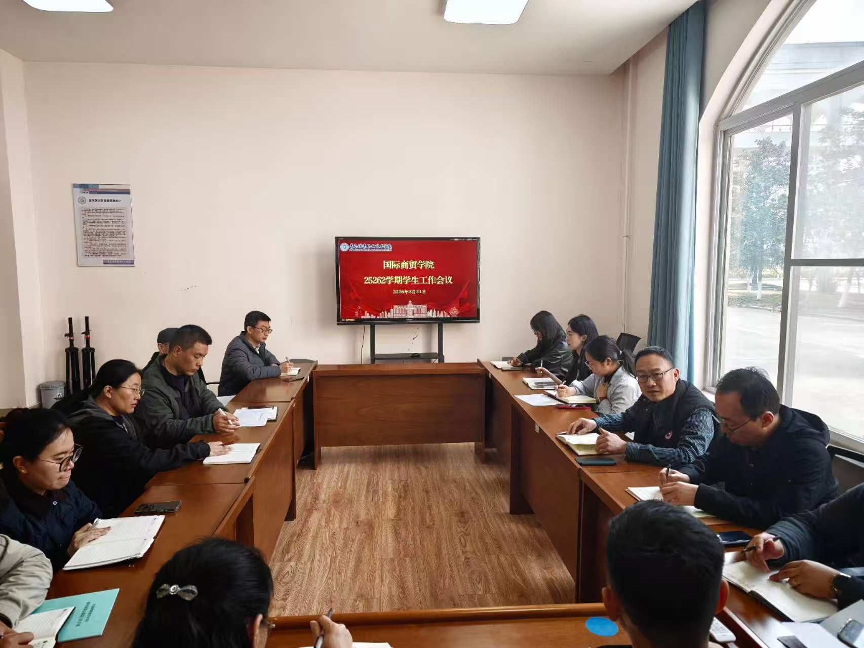 3月31日,国际商贸学院在B3-1024教室组织召开3月份学生工作月度总结会。学院党总支书记纪栋尚出席会议,全体辅导员、班主任参加会议,会议由党总支副书记孙学宾主持。