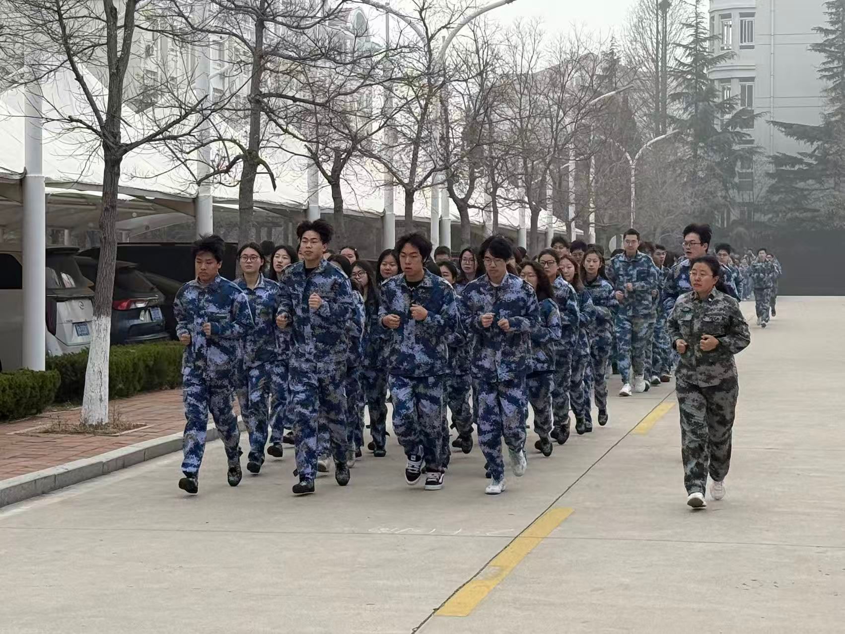 跑操现场,口令清晰有力,步伐整齐划一,全体师生精神抖擞、意气风发。辅导员身穿迷彩服、班主任们身着工装,融入学生队伍之中,与学生同节奏、共前行。此次活动不仅展现了学院师生昂扬向上、奋勇争先的精神风貌,更生动诠释了“以学生为本、健康第一”的育人理念,增强了班级的向心力与凝聚力,让集体荣誉感在奔跑中不断升华。