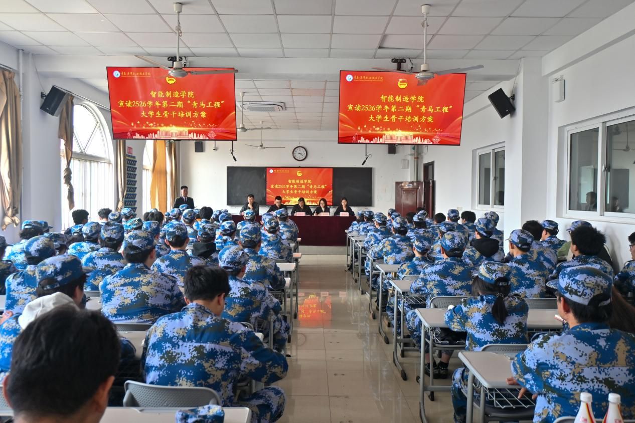 仪式在全体师生高唱共青团团歌中圆满落幕。本次“青马工程”培训将紧扣学院半军事化管理特色与智能制造专业优势,通过理论学习、实践锻炼、素质拓展等多元形式,引导青年骨干坚定理想信念、锤炼过硬本领,为学院高质量发展贡献青春力量。