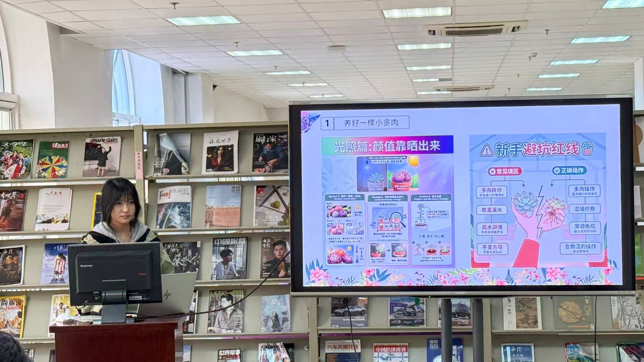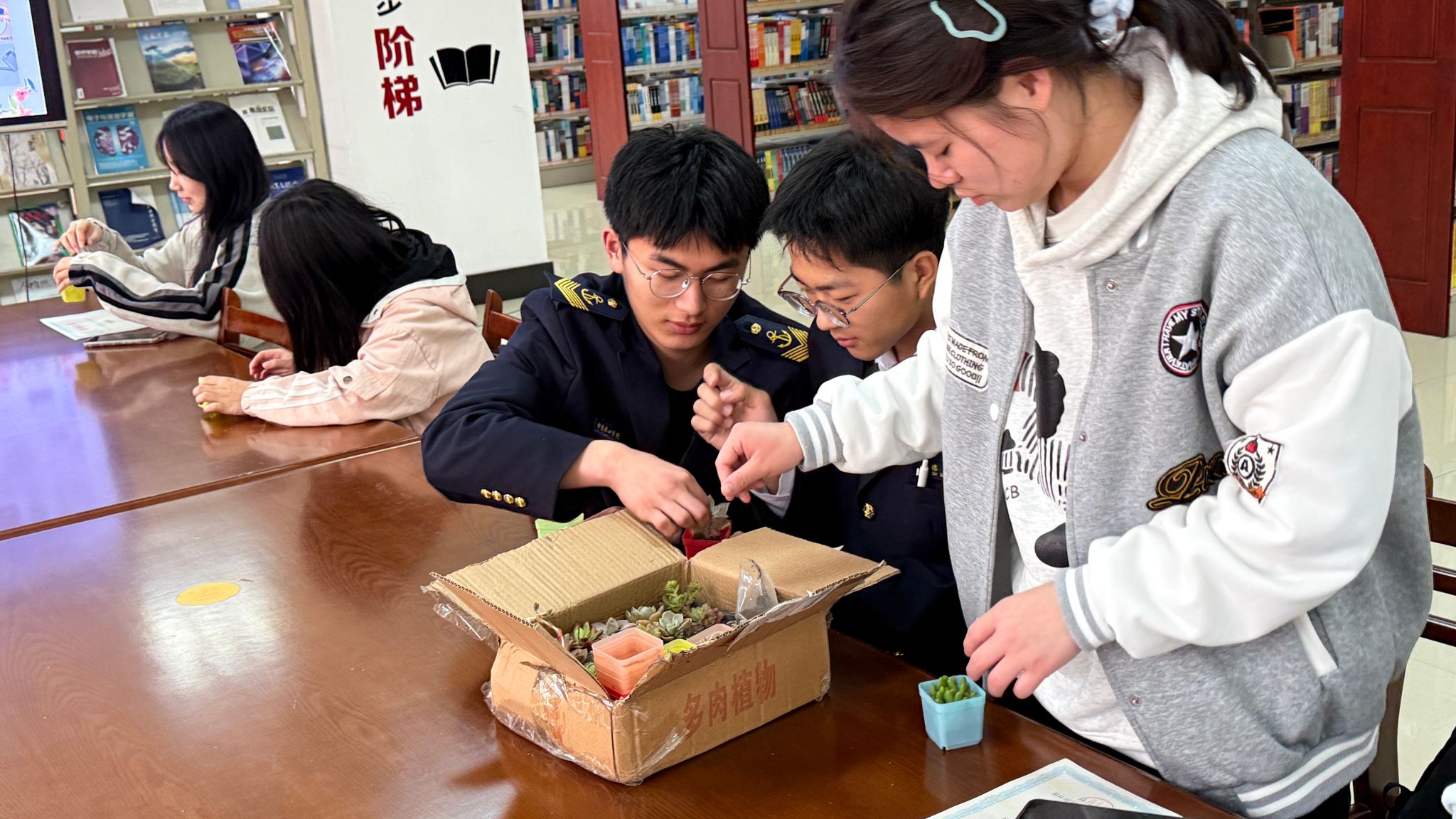 活动面向全校师生征集春日文稿、原创文字、摄影作品、创意手作,优秀作品在借阅厅集中展出,让春日美好与书香气息相互交融。现场特别设置心理自愈知识分享环节,引导大家科学调节情绪、舒缓学习生活压力,以更轻松的状态拥抱校园生活。活动尾声,图书馆为每位参与者送上多肉绿植,定格春日治愈瞬间。