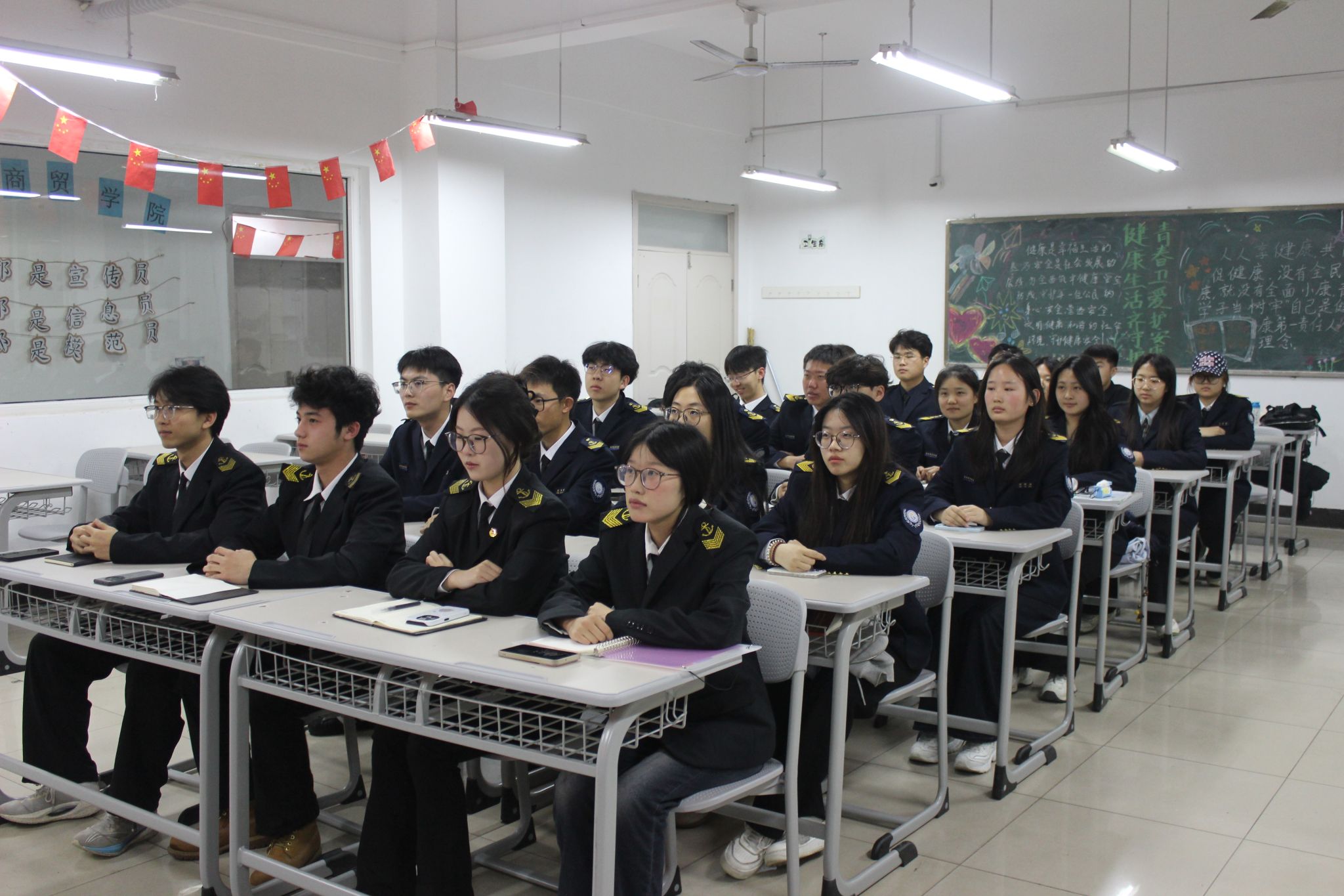活动中,两院观摩人员分批互访对方教室与卫生责任区,由各班生活委员讲解卫生清扫流程、日常管理方法及专业特色举措,重点学习优秀班级的细节管控、工具摆放规范与长效管理机制。随后召开的研讨交流会上,各班代表分享管理经验,围绕航海专业实操区维护、商贸专业物料摆放等专业特色难点展开深度探讨,共商优化方案,明确统一检查标准与整改措施。