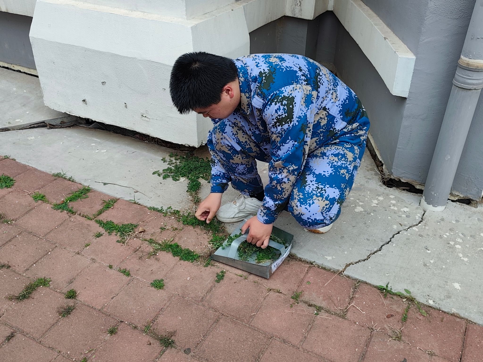 活动中,志愿者们秉持认真负责的态度,积极投入到环境整治工作中。大家分工明确、配合默契,手持工具对宿舍楼下区域进行全面清理,认真开展扫地、拔除杂草、捡拾生活垃圾等工作。面对地面杂物、边角杂草等卫生问题,志愿者们不怕脏、不怕累,俯身清理每一处卫生死角,用实际行动守护校园洁净。