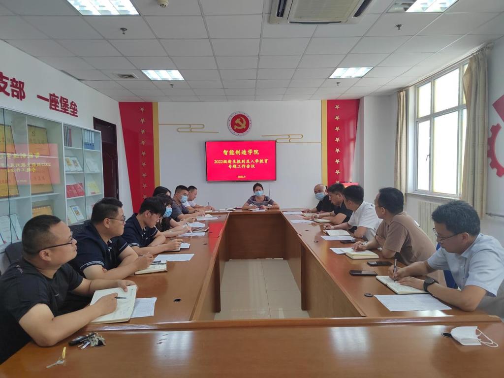 为确保2022级新生平稳、安全、有序入学,推动新生报到及入学教育各项工作落实落细,9月1日,智能制造学院召开专题会议对2022级新生报到及入学教育工作进行部署安排,学院全体辅导员和兼职班主任参加了会议。会议由智能制造学院院长助理王宽主持。