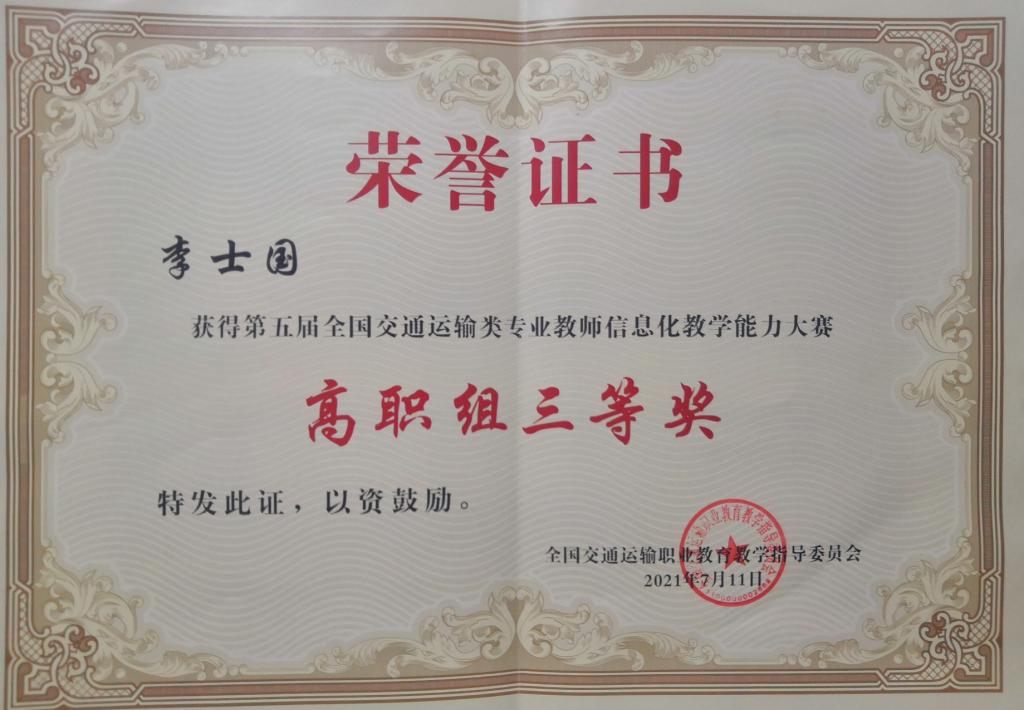 2021年7月9日,由全国交通运输职业教育教学指导委员会主办的“第五届全国交通运输类专业教师信息化教学能力大赛”在河南交通职业技术学院举行,青岛港湾职业技术学院海事学院刘颖妍老师、李士国老师参加了本次决赛,分别获得高职本科组一等奖和三等奖。