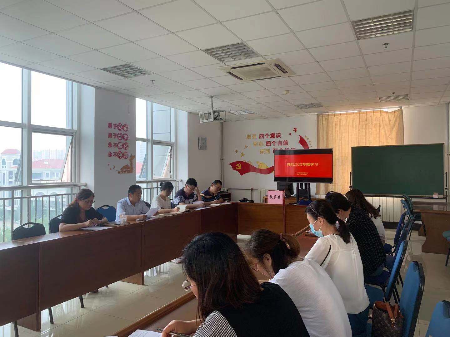 6月29日下午,公共教学部党支部在A-501会议室组织党史学习主题党日活动。支部全体党员参加,活动由党支部副书记彭翠主持。