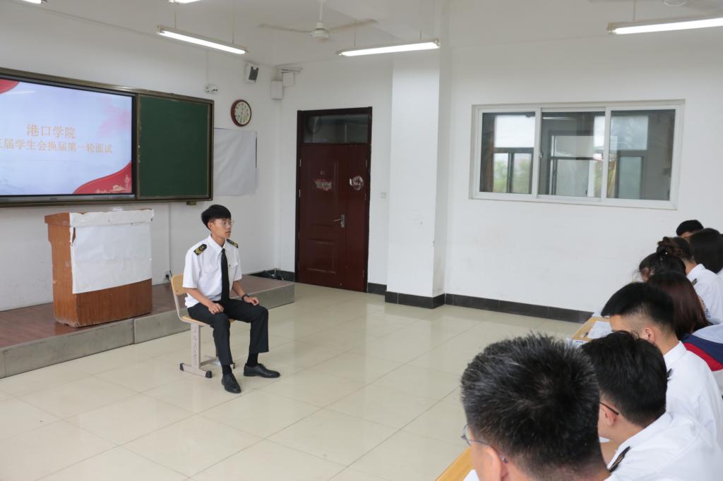 6月9日起,港口学院于A2教学楼进行学生会新一轮面试,港口学院党支部副书记刘丽、团总支书记王宽,辅导员周厚喜、吕亭亭、丁东杰、马骋、高家诚及各部门部长、副部长出席本次竞选人员面试。