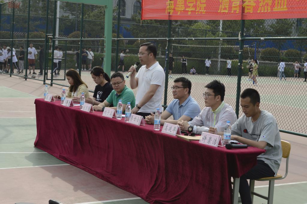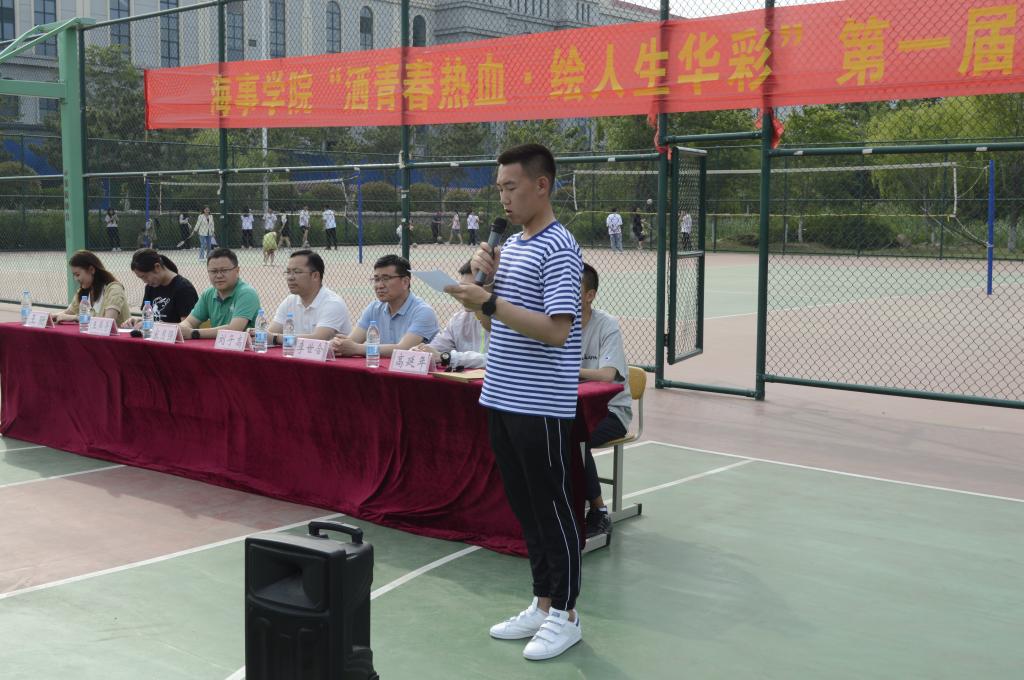 6月7日,海事学院在篮球场举行“洒青春热血 绘人生华彩”第一届“青春杯”篮球比赛开幕式,海事学院党支部副书记刘子高,团总支书记宋月强,全体辅导员老师,全体运动员、裁判员参加开幕式,开幕式由辅导员许崇浩老师主持。