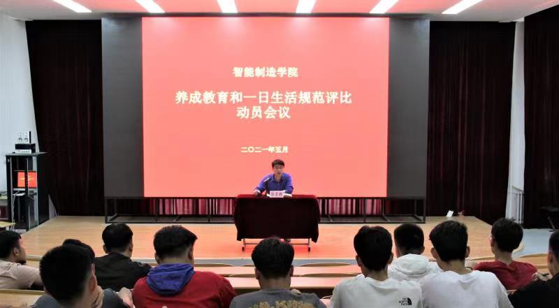 5月24日,智造学院召开养成教育和一日生活规范评比工作动员会议,学院辅导员、院属各班级和学生会主要学生干部参加会议。