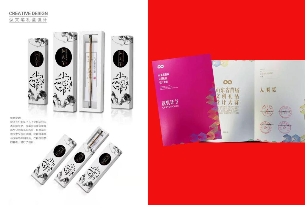 近日,我院公共教学部闫涛老师的作品《弘文笔礼盒设计》入围山东省首届文创礼品设计大赛。