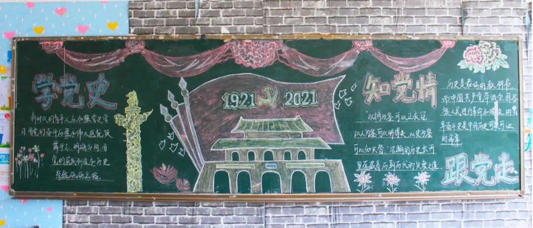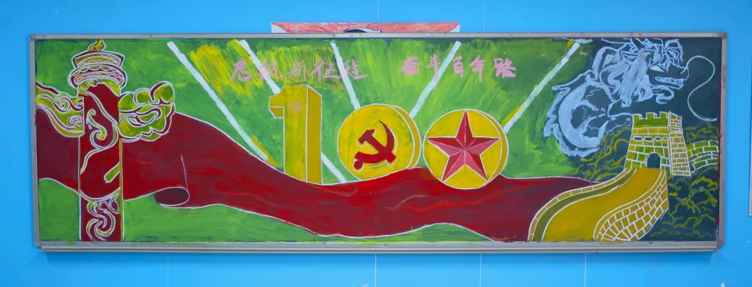 各班级把建党100年的风雨历程融入到黑板报创作之中,制作出了一批有质量、有品味、有创意、有较高审美价值的板报。