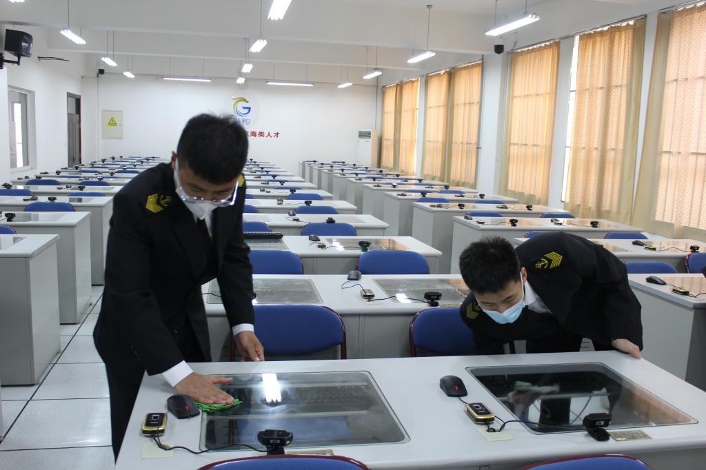 “逐梦深蓝”志愿者服务队对实训室进行全面清理,为单招考试提供干净舒适的场所;对单招面试需要的设备进行维护,为空乘专业单招提供接待服务、后勤保障服务,确保单招面试顺利进行。
