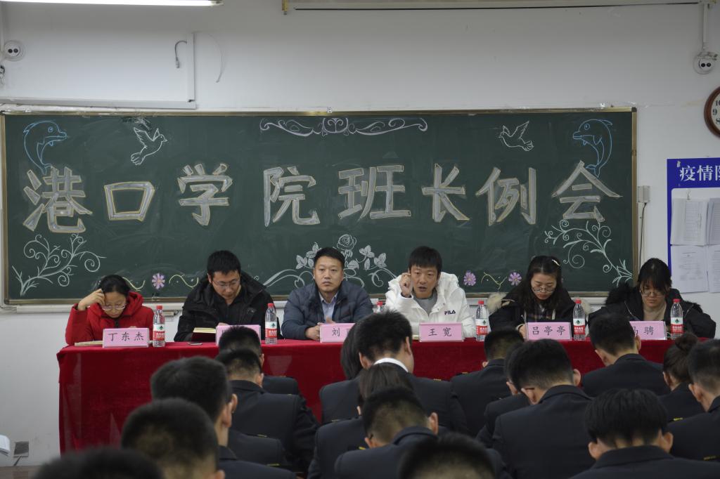 12月7日,港口学院于A2-406召开班长例会。会议由团总支书记王宽主持,党支部副书记刘丽,辅导员周厚喜、丁东杰、吕亭亭、马骋出席本次会议、19、20级全体班长及19级全体学生干部参加本次会议。