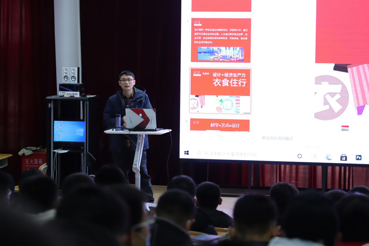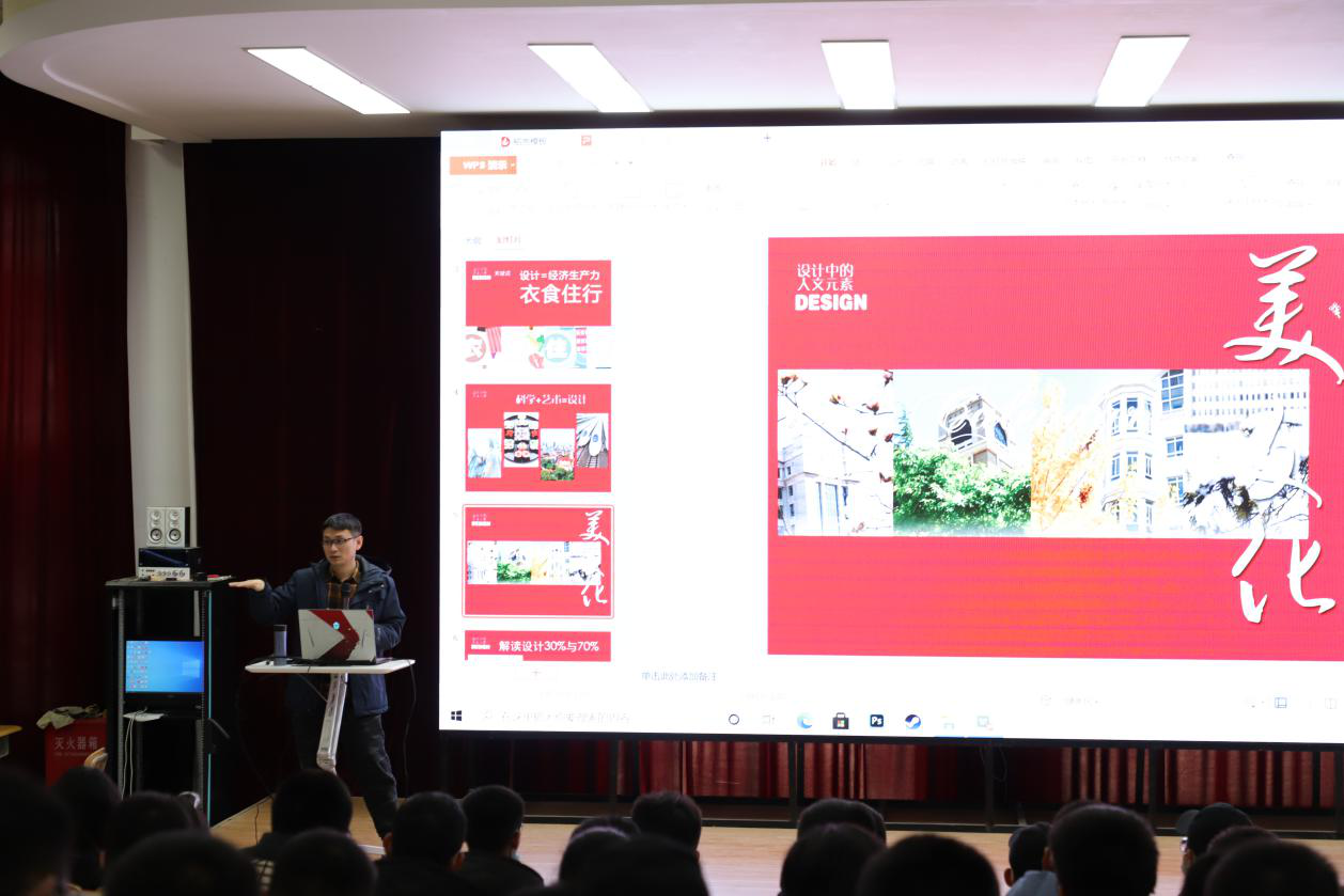 12月1日下午,公共教学部副教授闫涛在B5小礼堂为我校学生做了一场主题为“设计中的人文元素”的美育文化讲座。