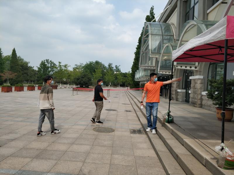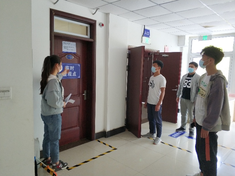 5月26日,海事学院组织首批复课学生进行疫情防控应急演练,辅导员高延年老师、王燕芳老师指导学生演练。