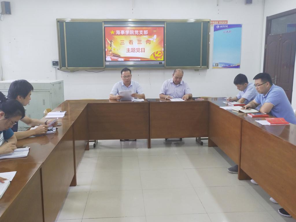 8月29日下午,海事学院党支部在B1-306召开“三看三问”主题教育党日会议,会议由支部书记刘子高同志主持,支部全体党员参加会议。