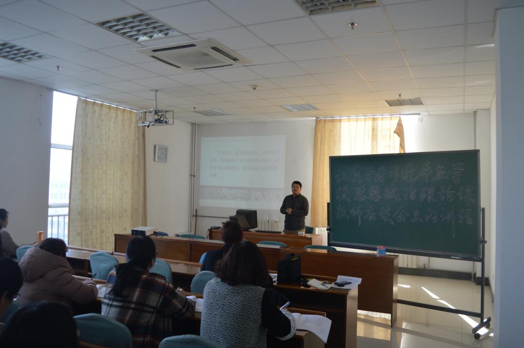 中共中央总书记、国家主席、中央军委主席习近平18日上午在京主持召开学校思想政治理论课教师座谈会并发表重要讲话。3月19日,全体思政教师组织开展讲话学习活动。习总书记强调,“思政课教师,要给学生心灵埋下真善美的种子,引导学生扣好人生第一粒扣子。”这是对思政教师提出的要求,更是我们的责任和使命。立德树人首先应从自身做起,要有堂堂正正的人格,用高尚的人格感染学生、赢得学生,用真理的力量感召学生,以深厚的理论功底赢得学生,培养为中国特色社会主义事业奋斗终身的有用人才。
