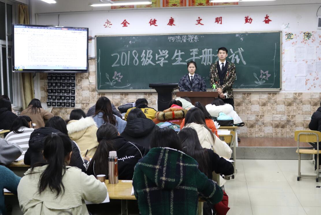 12月16日晚上,物流管理系在各班教室举行《学生手册》考试, 18级全体学生参加本次考试。