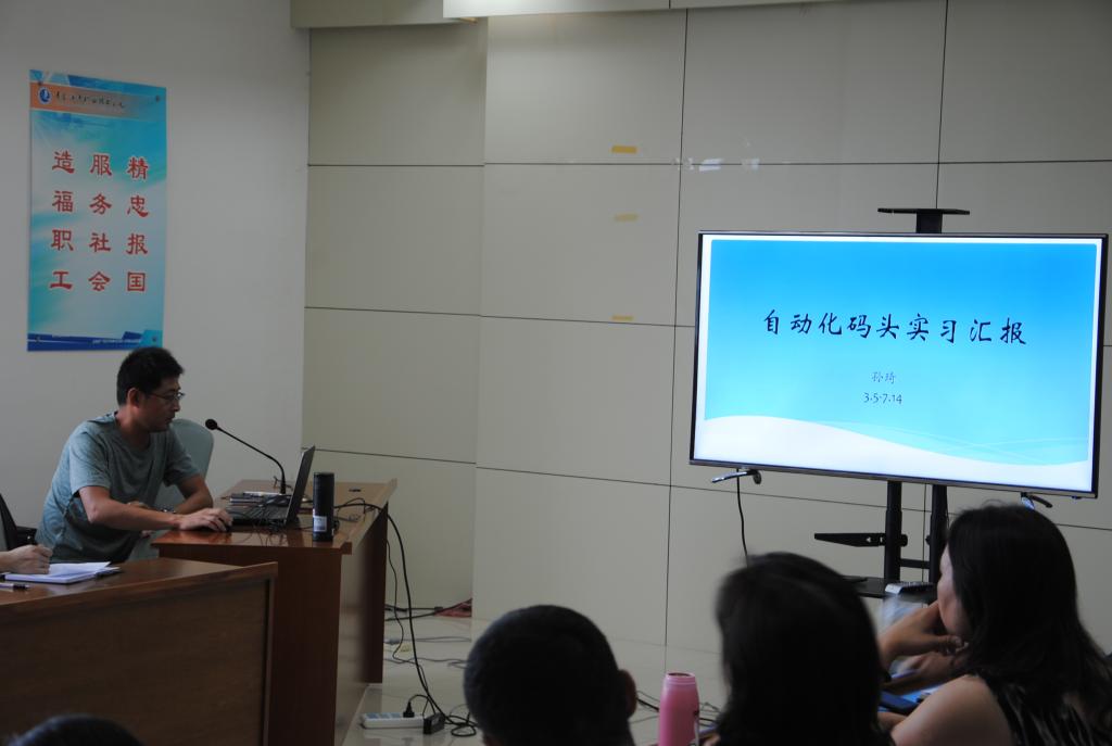 孙琦老师被派到青岛港新前湾集装箱码头有限责任公司脱产跟岗实践半年,对自动化码头的设备、工艺和业务流程有了全面的认识和了解。报告会上,孙琦老师首先对自动化码头和主要设备进行了介绍,然后根据自己的切身实习,总结了自己的工作与收获,并对专业课程设置、授课内容、课题论文等提出了个人的思考和建议。