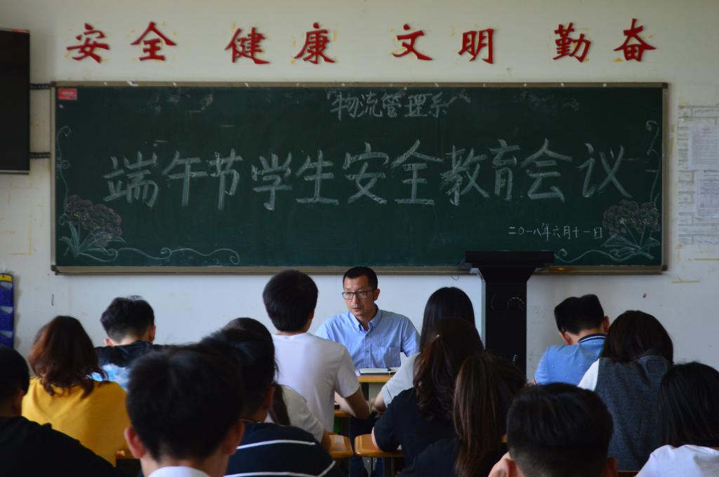 6月12日下午,物流管理系在A1-403教室召开2018年端午节假期学生安全教育会议。系属各班级班长、学生会干部出席参加了会议,会议由孟波副主任主持召开。