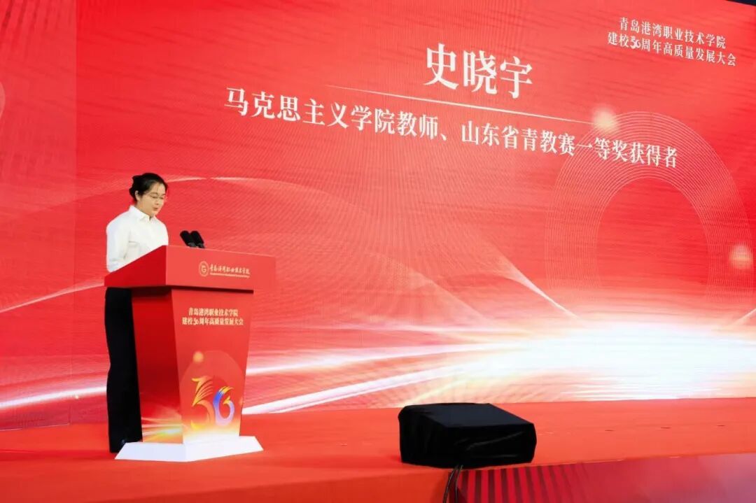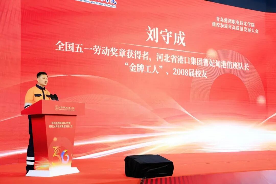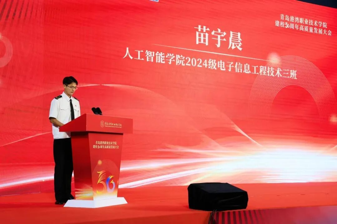 河北省港口集团曹妃甸港值班队长、全国五一劳动奖章获得者、河北省青年岗位能手、唐山市“金牌工人”刘守成;学校马克思主义学院教师、山东省青教赛中荣获一等奖获得者史晓宇;人工智能学院24电子信息工程技术3班苗宇晨作为师生代表发言。